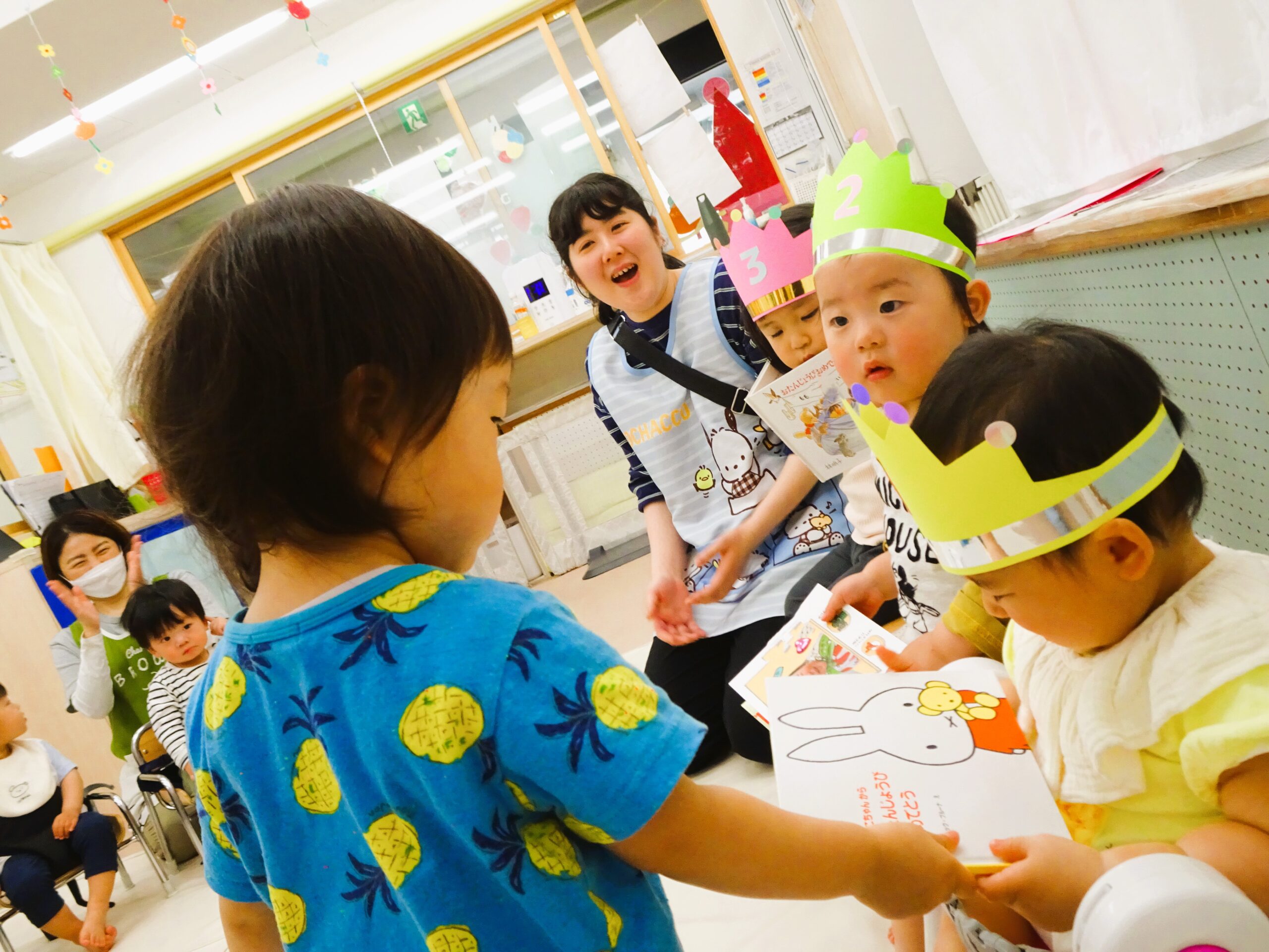 5月のお誕生児さんは、各クラス1名ずつ、合計3名のお友達です🍓🍊🍑💛