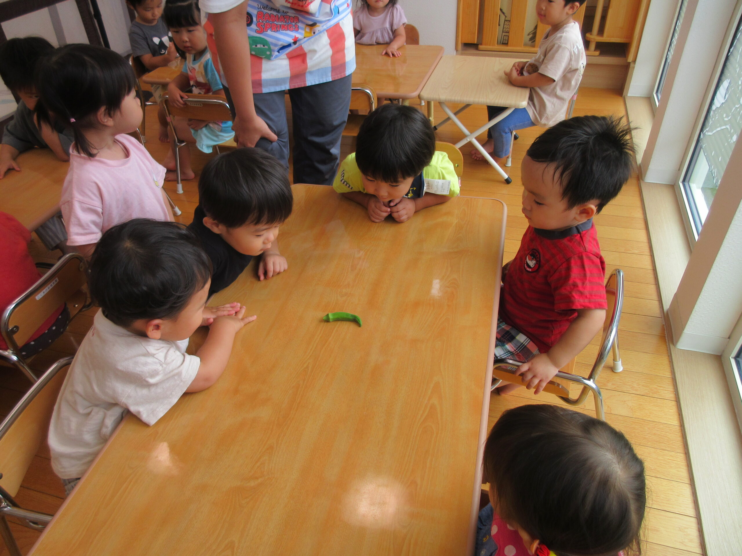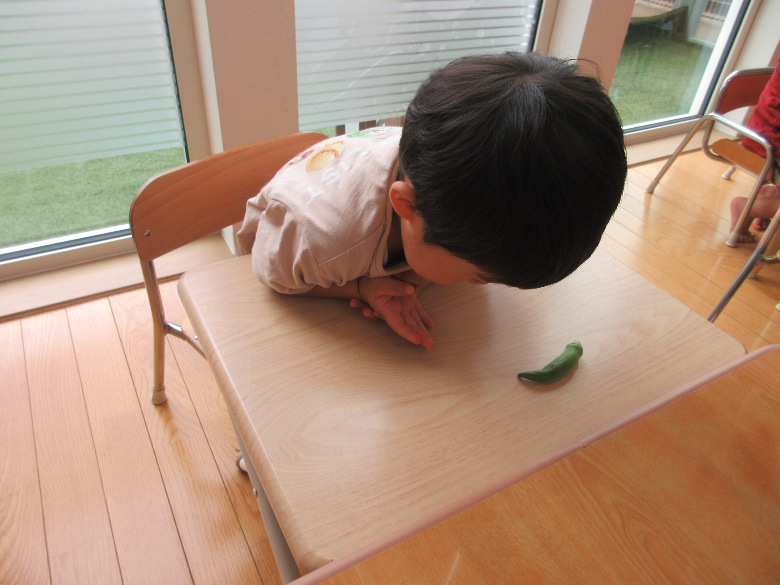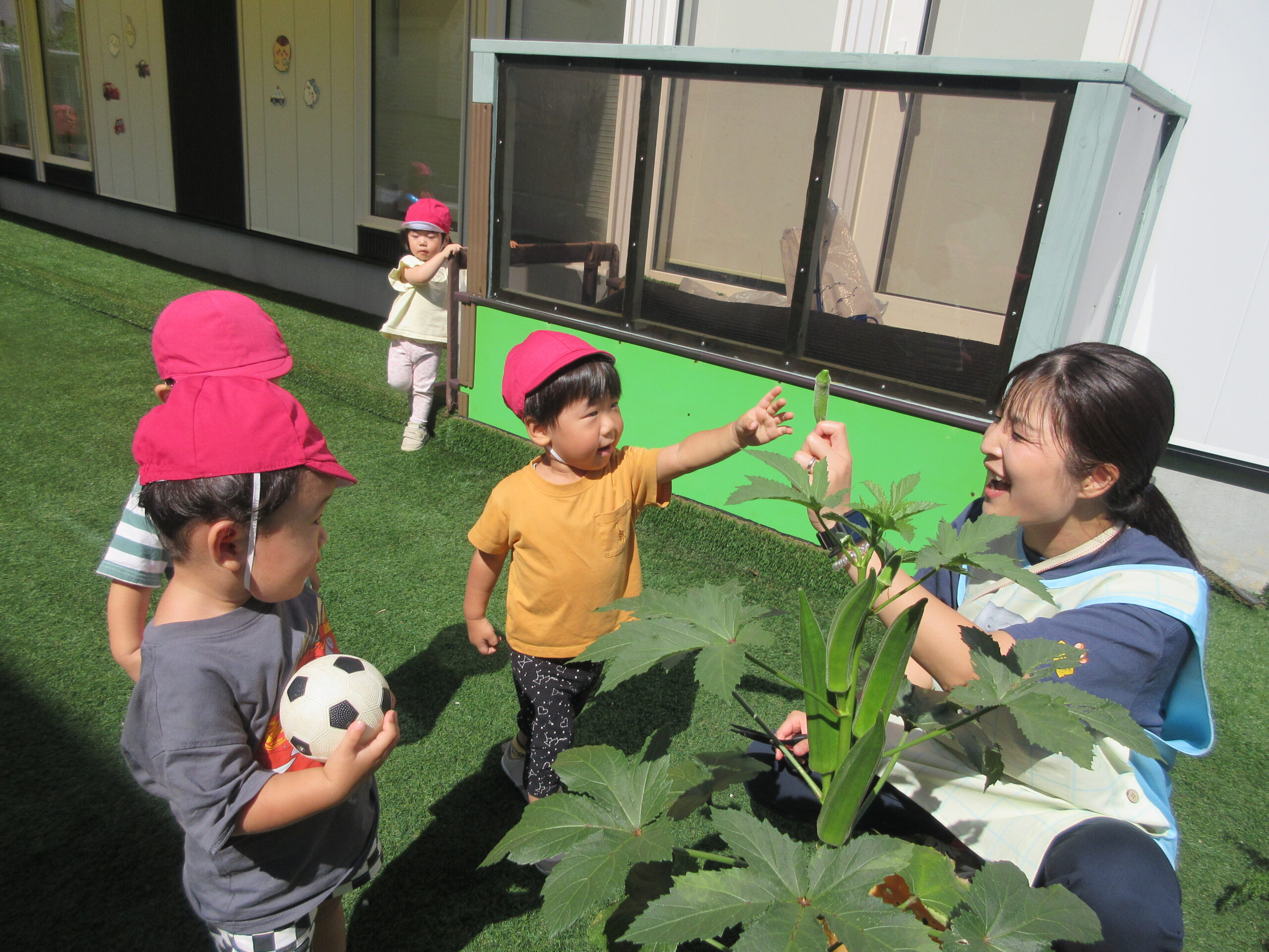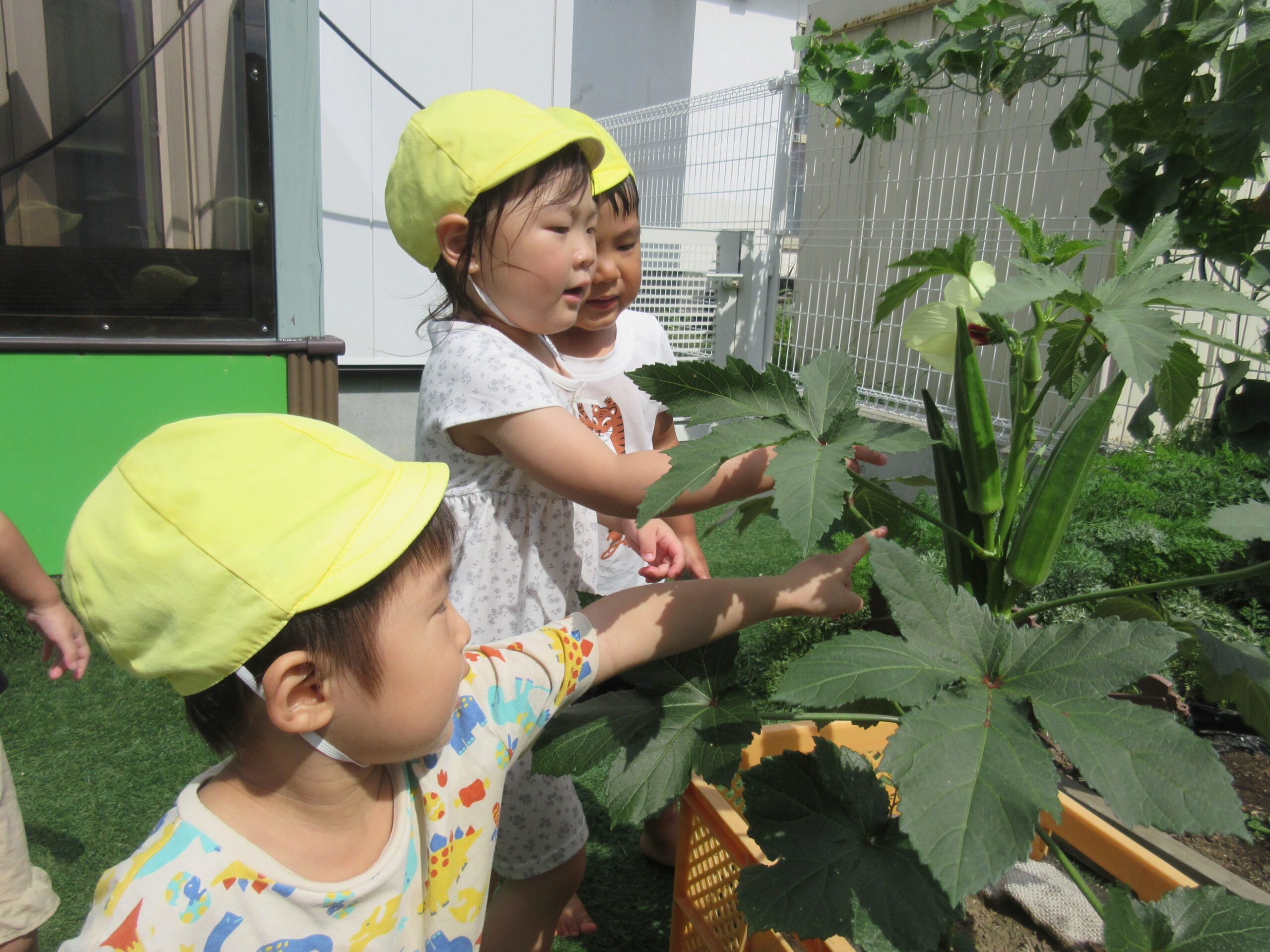 ぐんぐん育つオクラにみんな興味深々👀