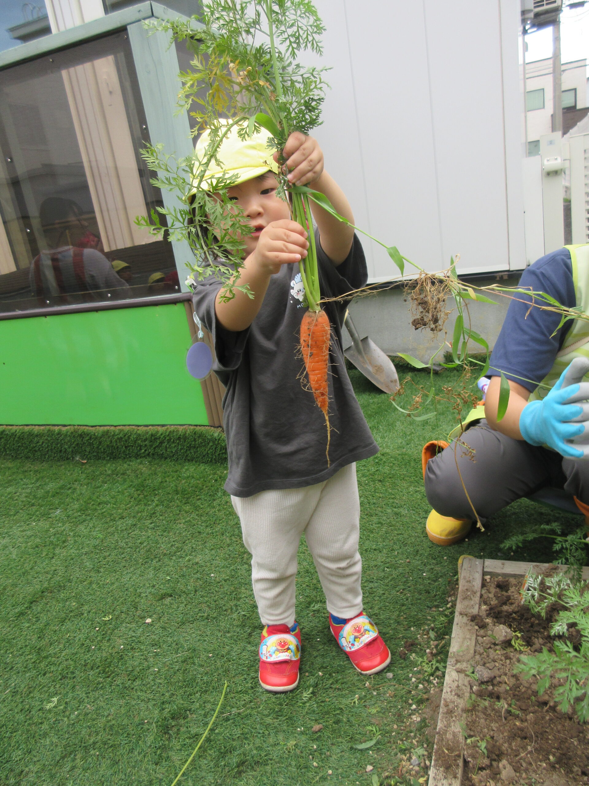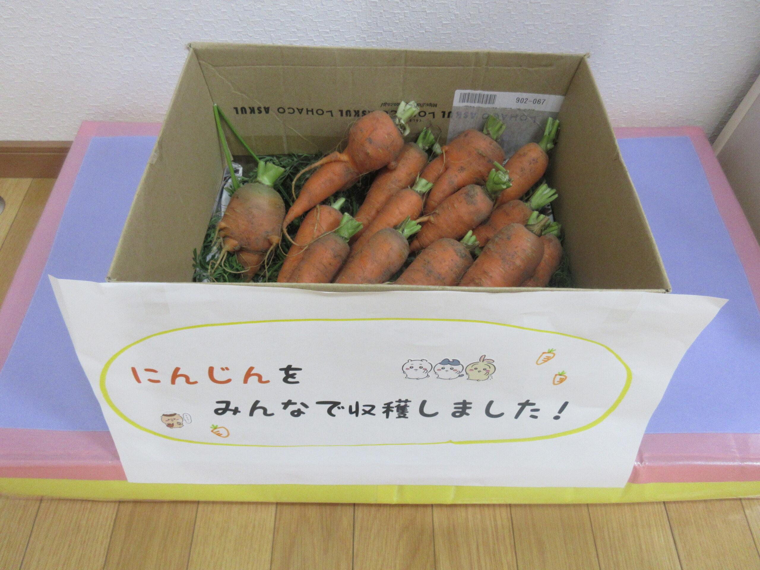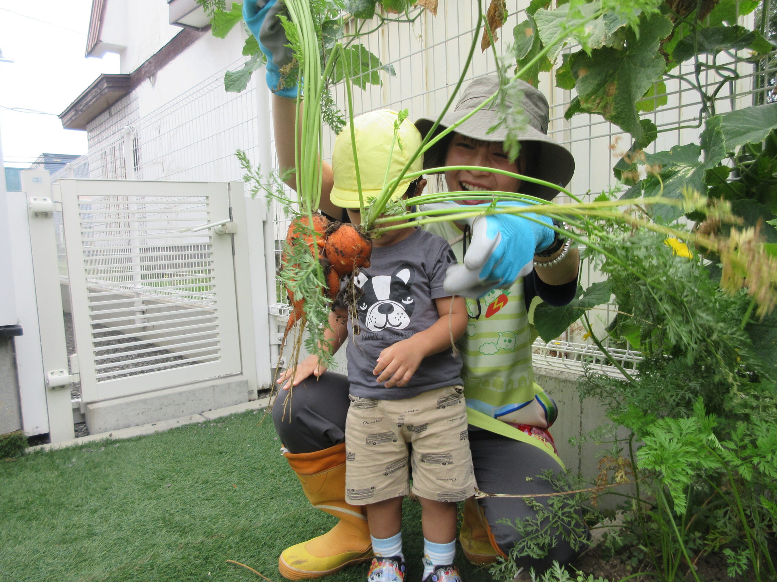 お迎えに来た保護者の方にも、収穫したにんじんを見ていただきました😊