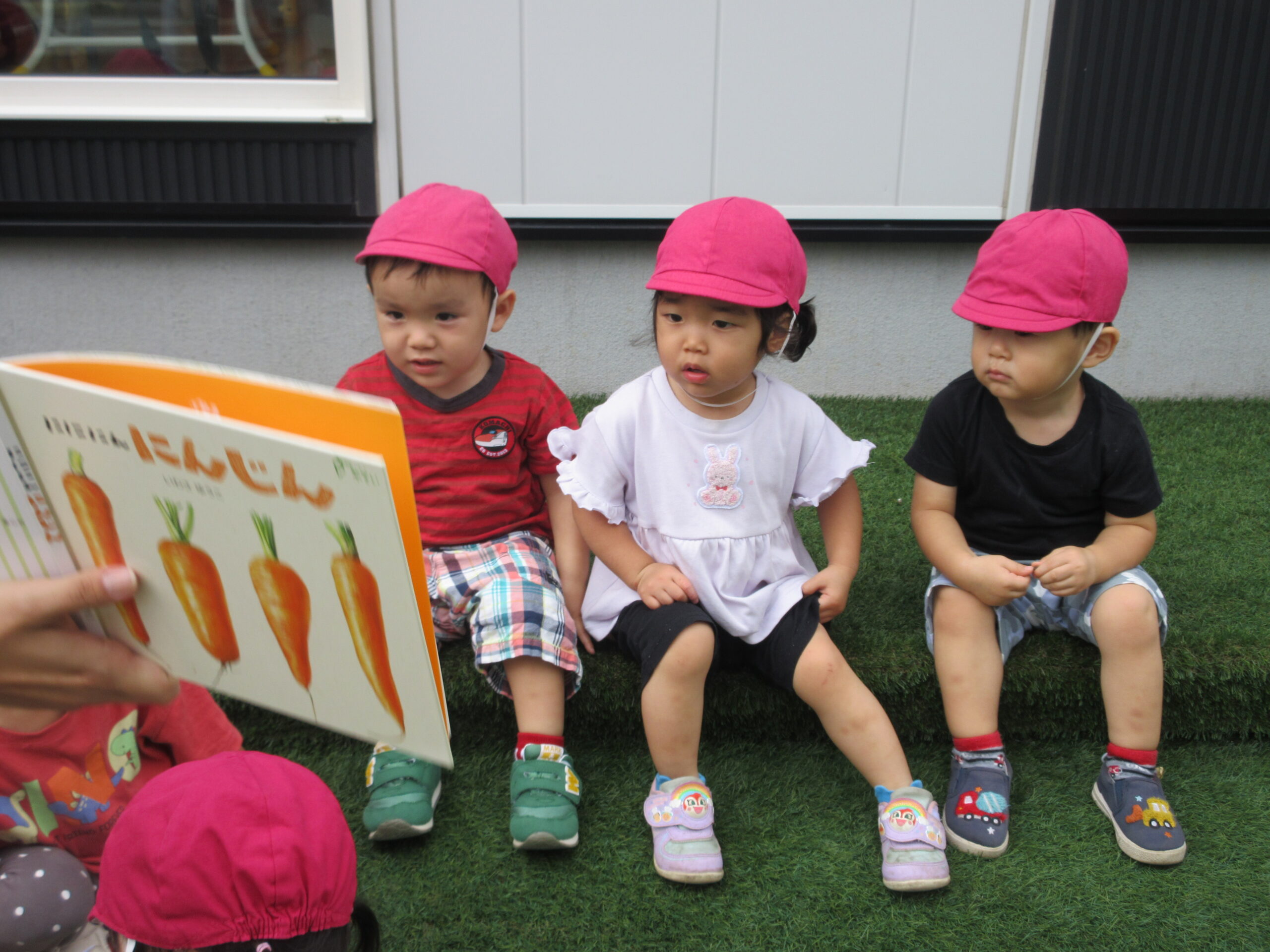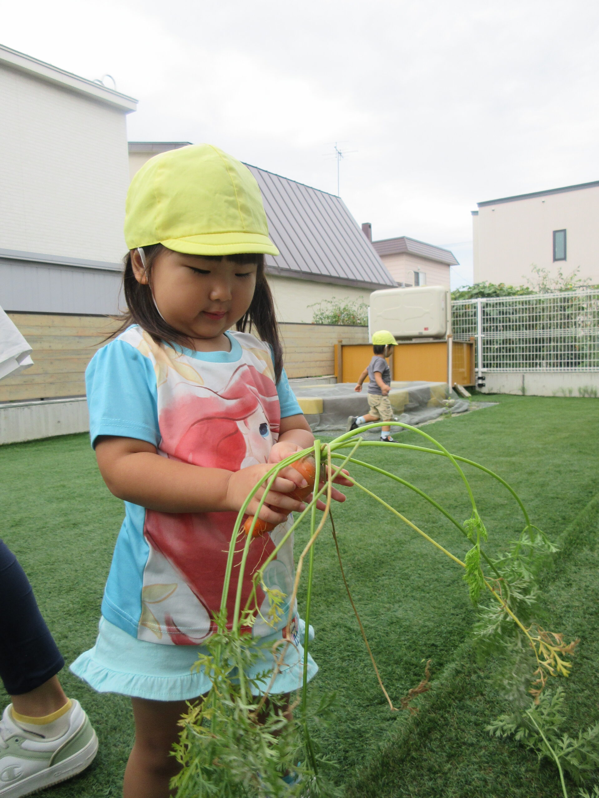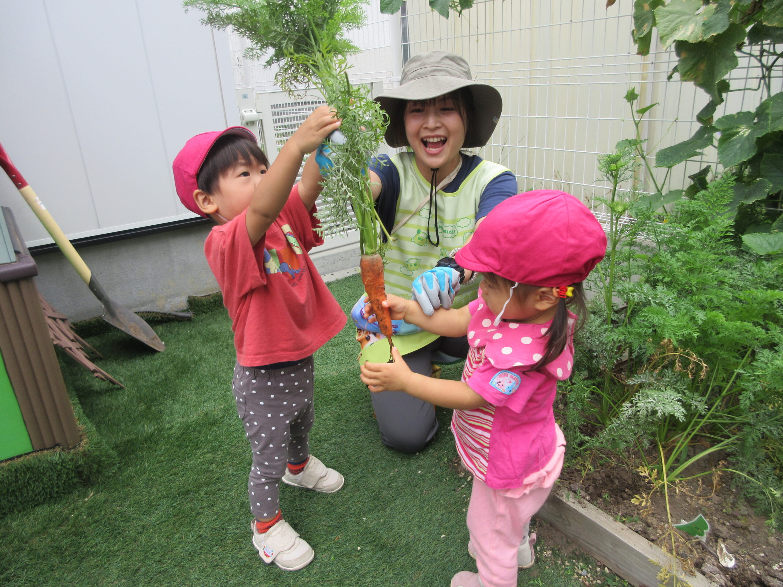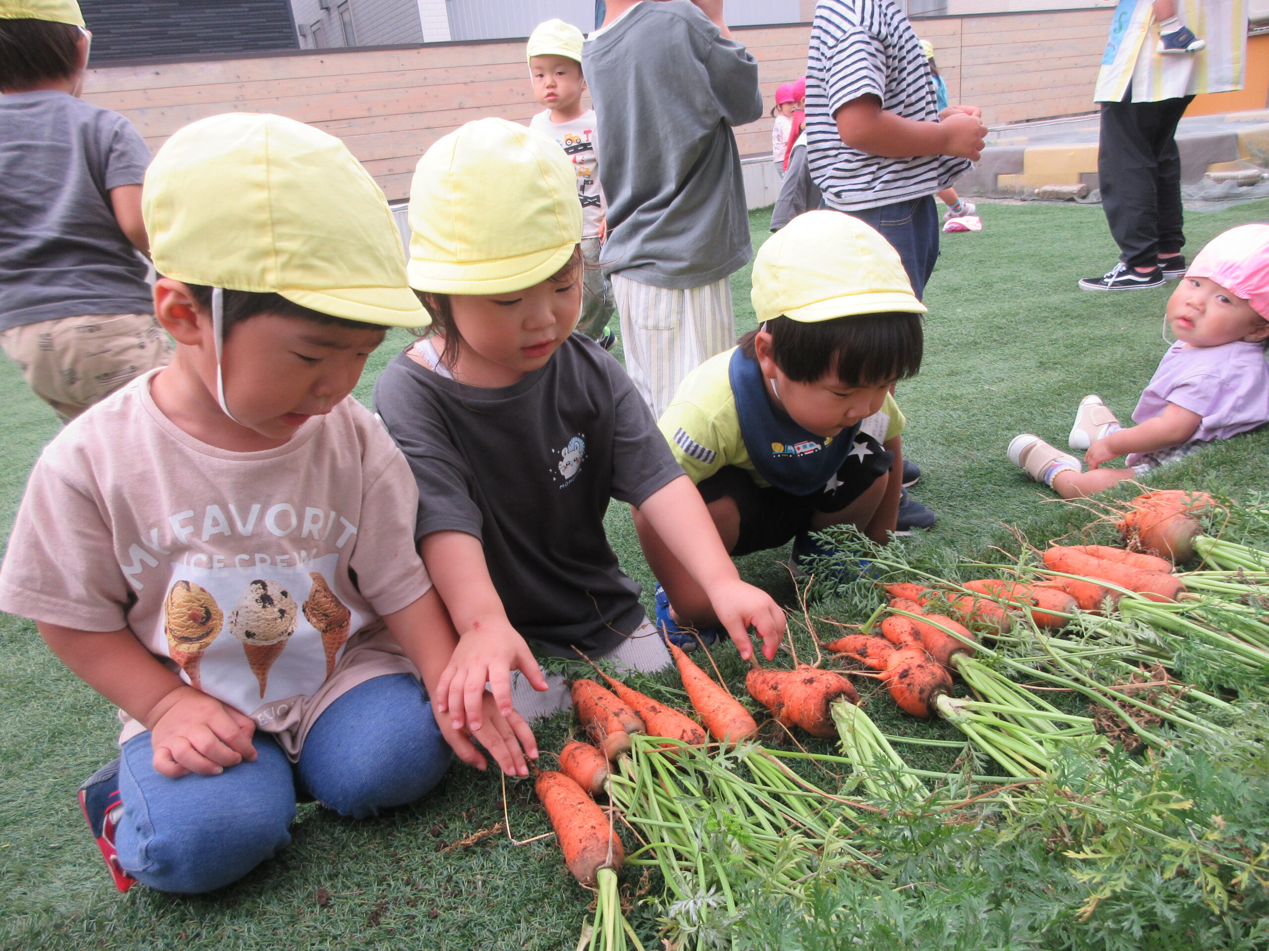 お迎えに来た保護者の方にも、収穫したにんじんを見ていただきました😊