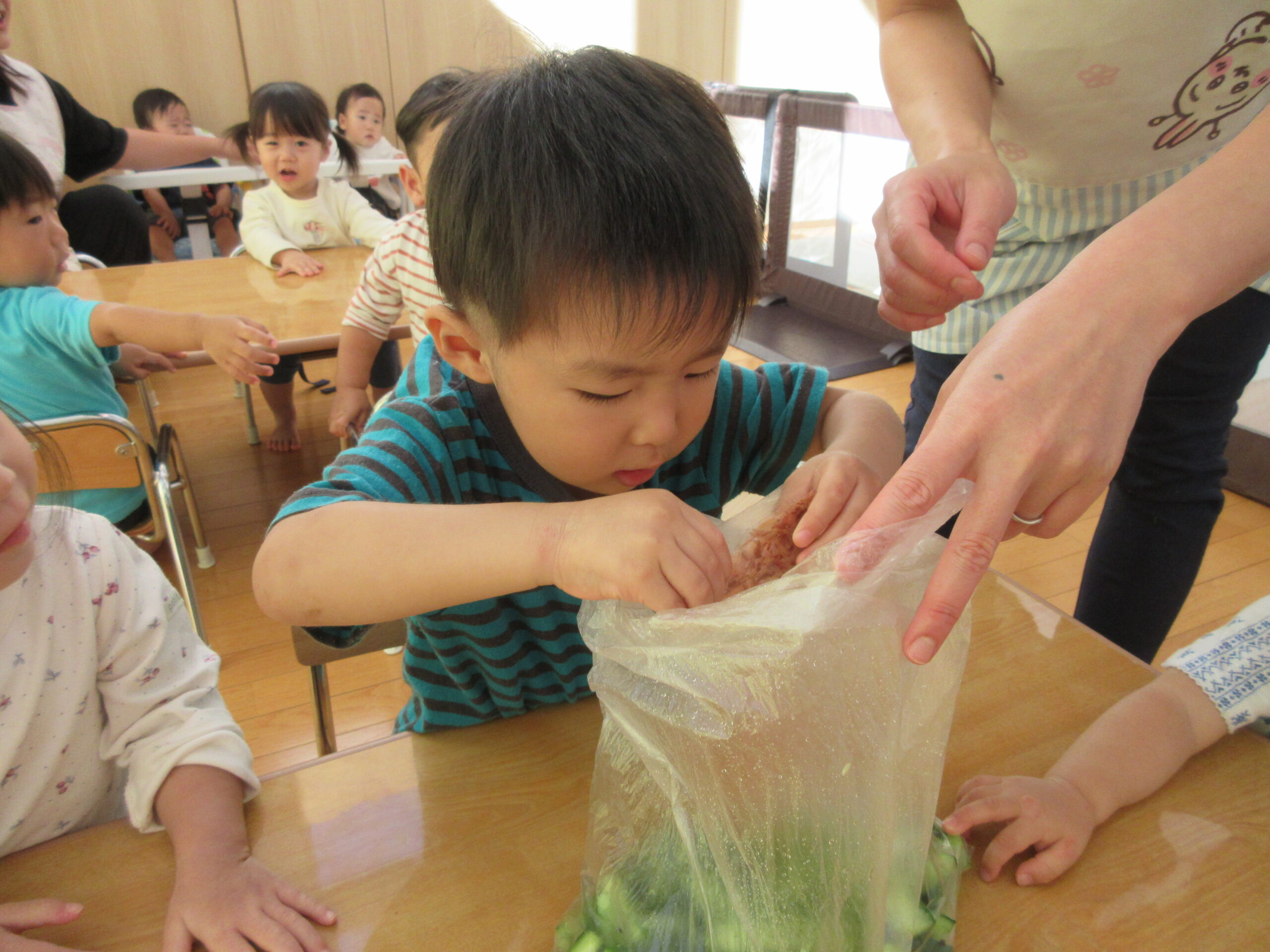 味付けや揉みこみ等みんなでクッキングをして給食で食べました😊