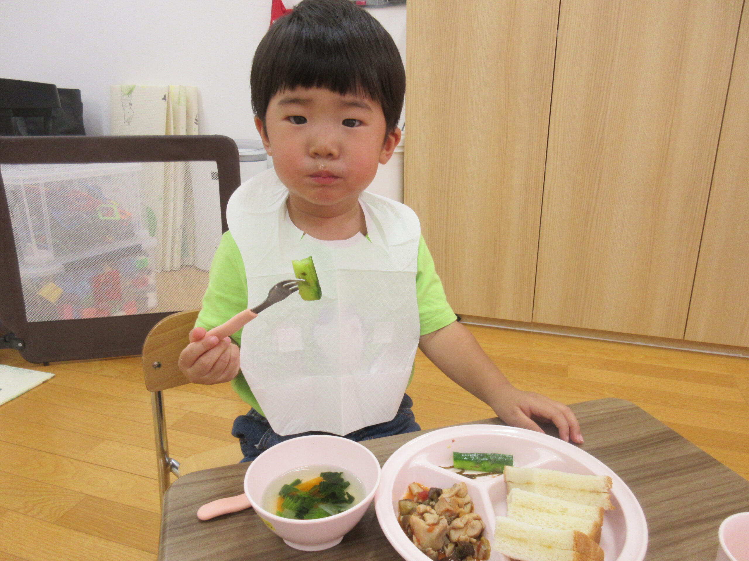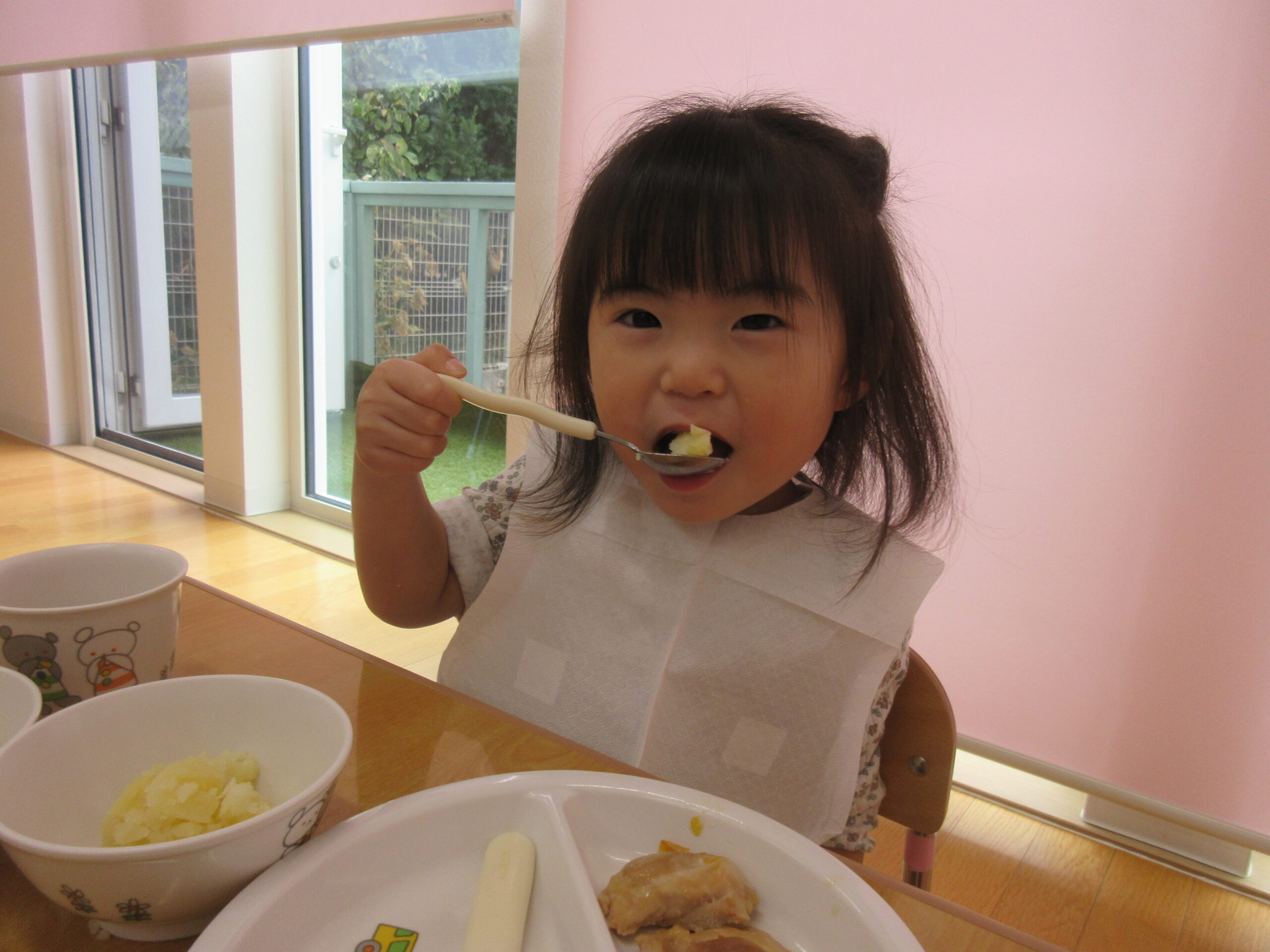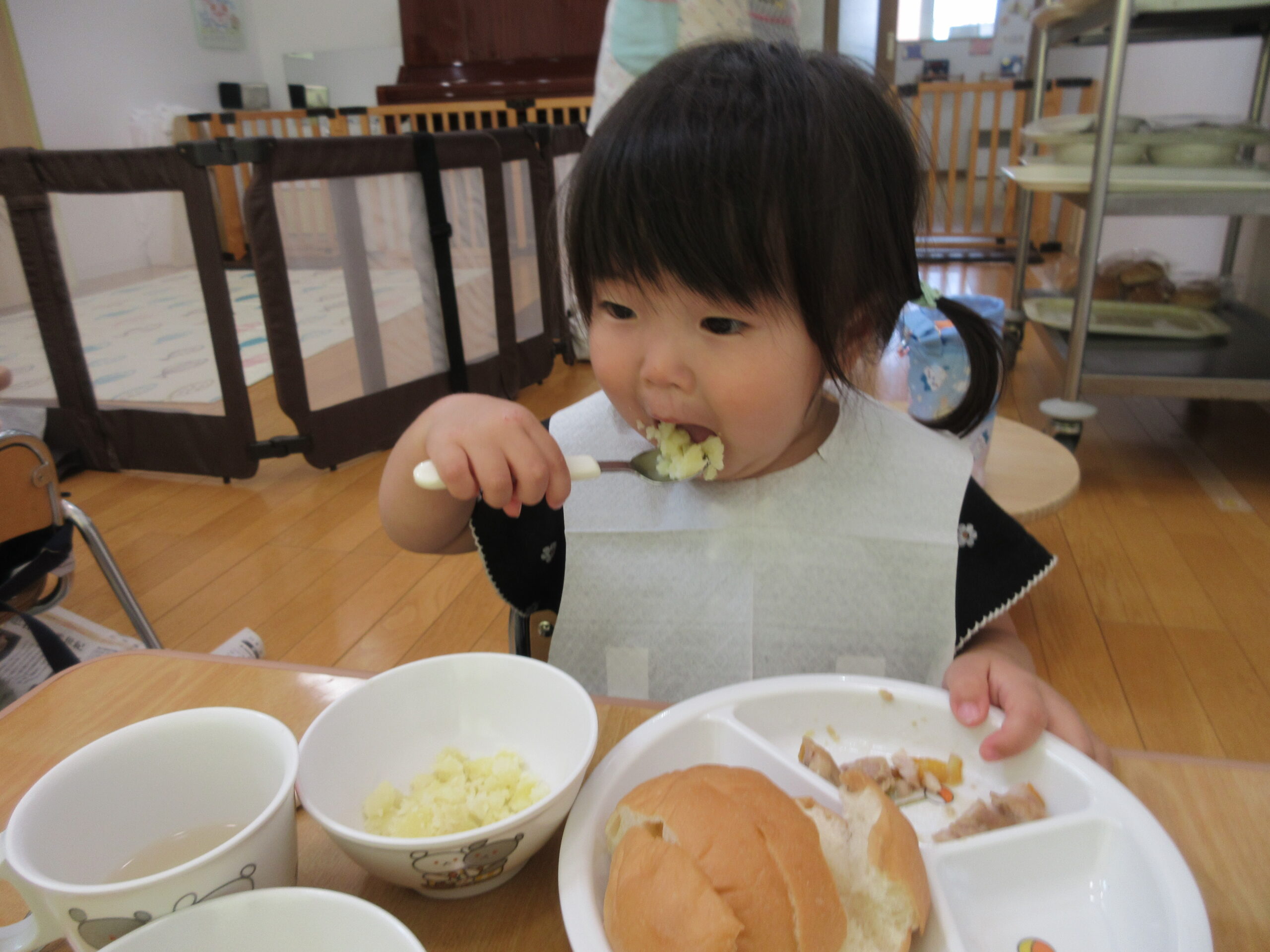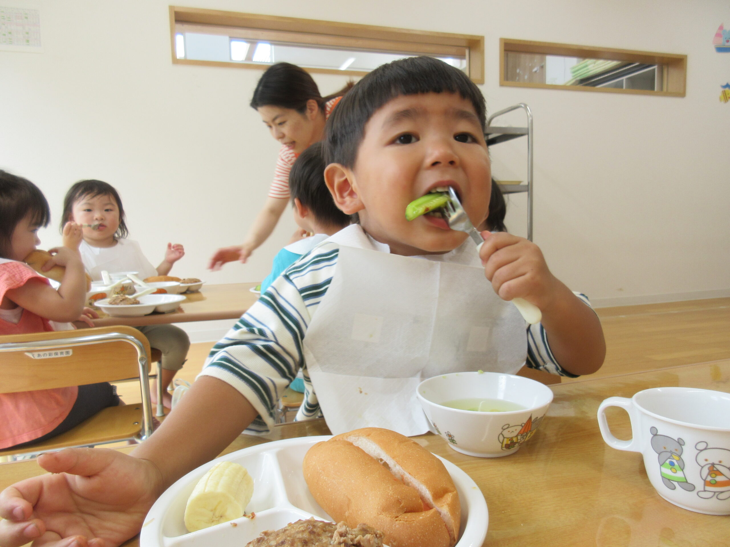 ★給食提供の際には、安全のために全員半分に切って提供しました!