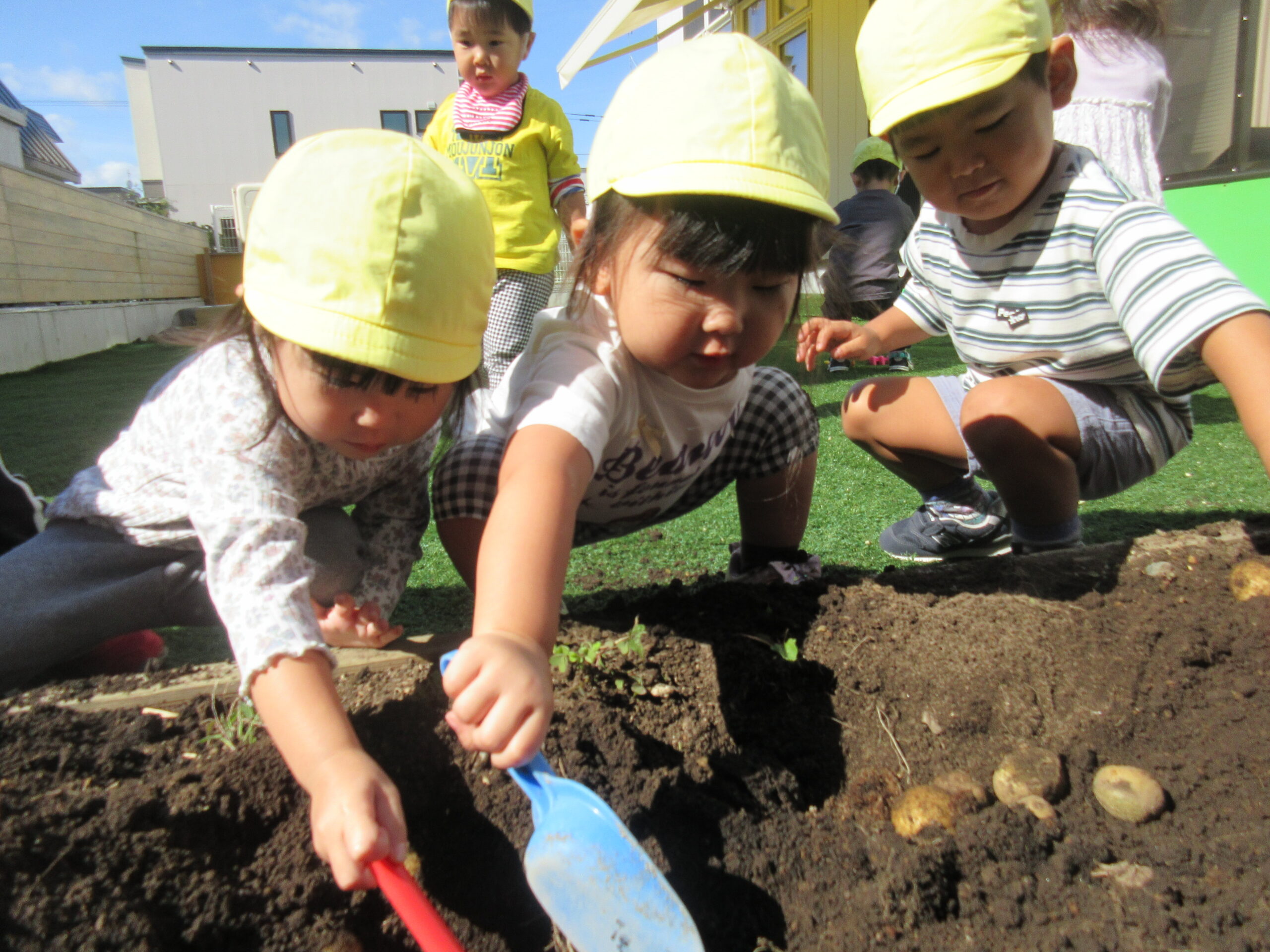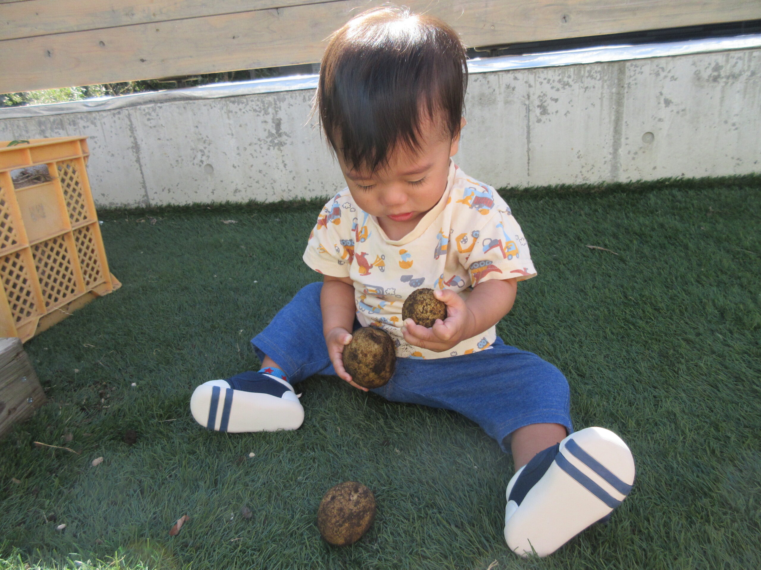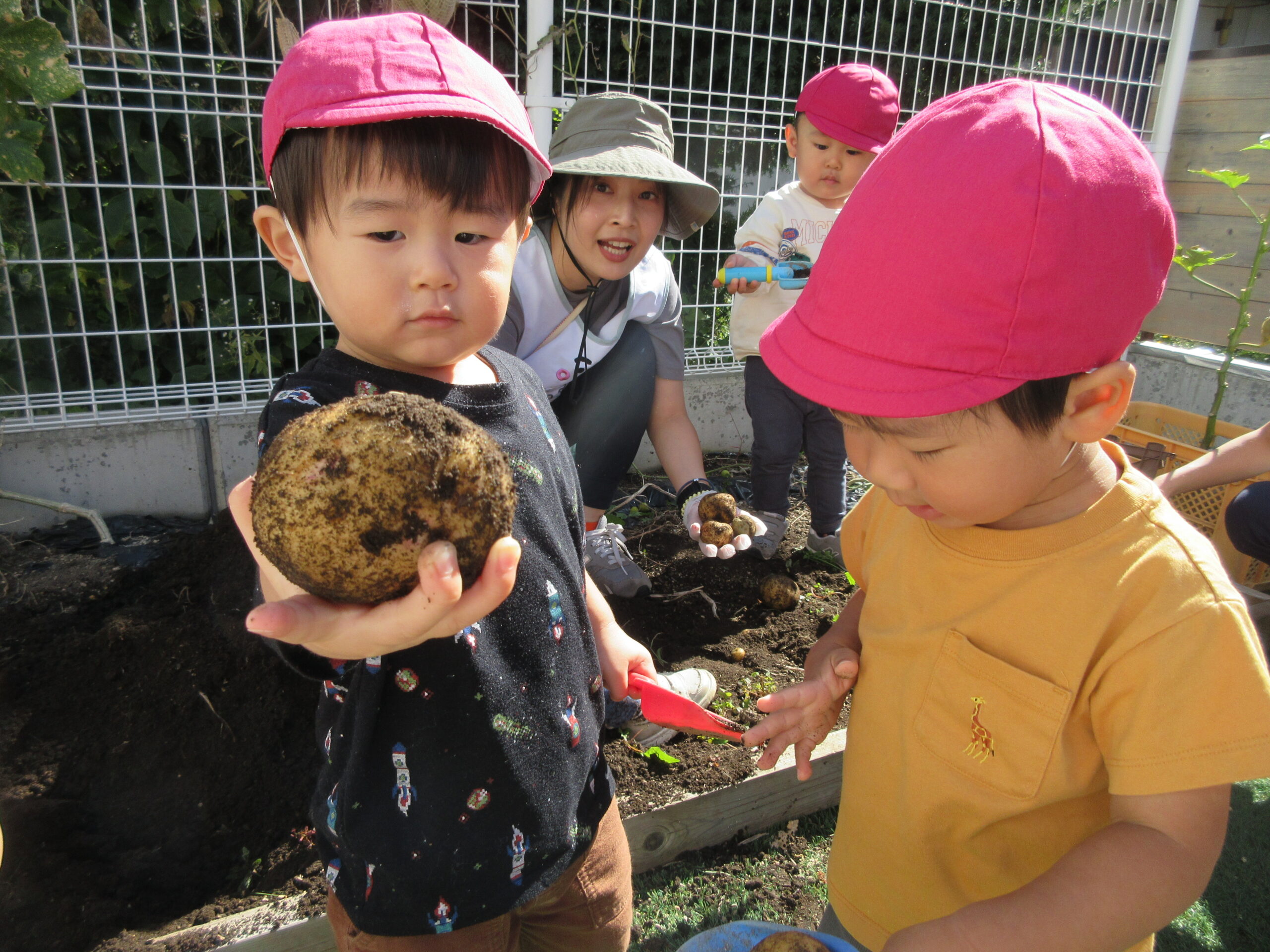 土の中からゴロゴロ出てくるじゃがいもに、大興奮!