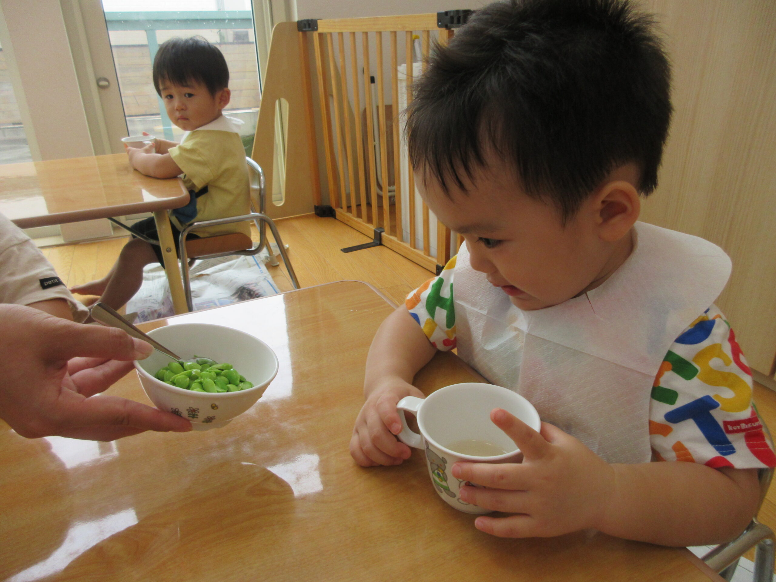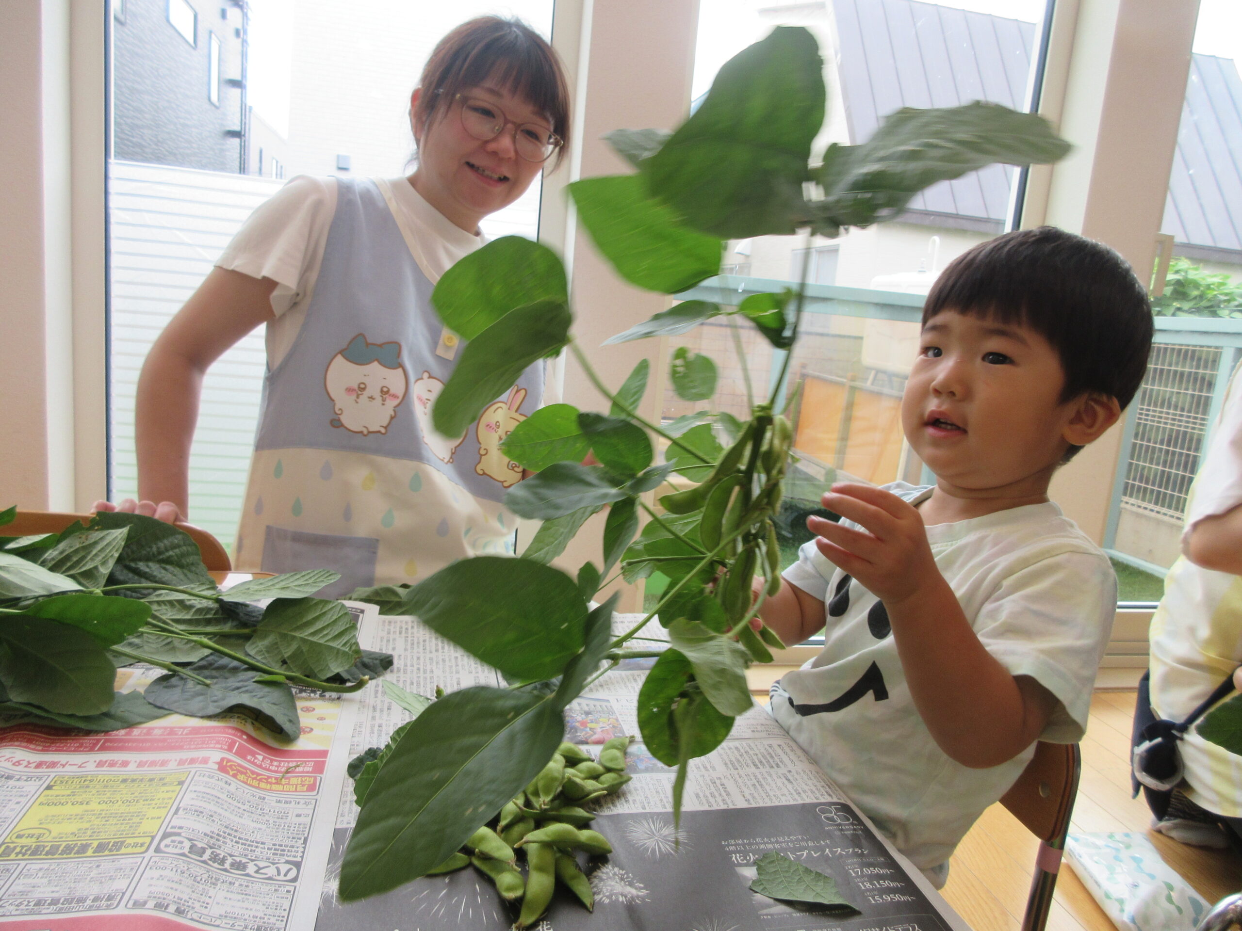 ゆでたての枝豆を実際に見て、匂いをかいで・・・👀