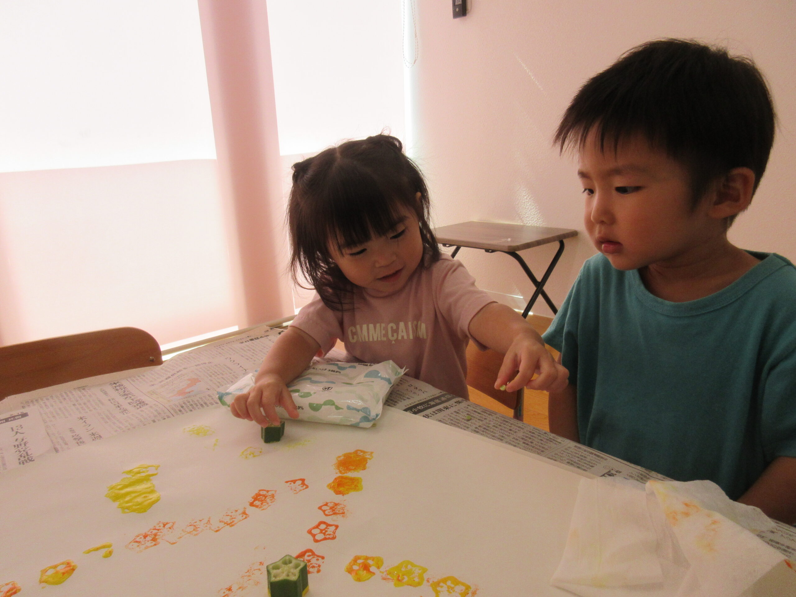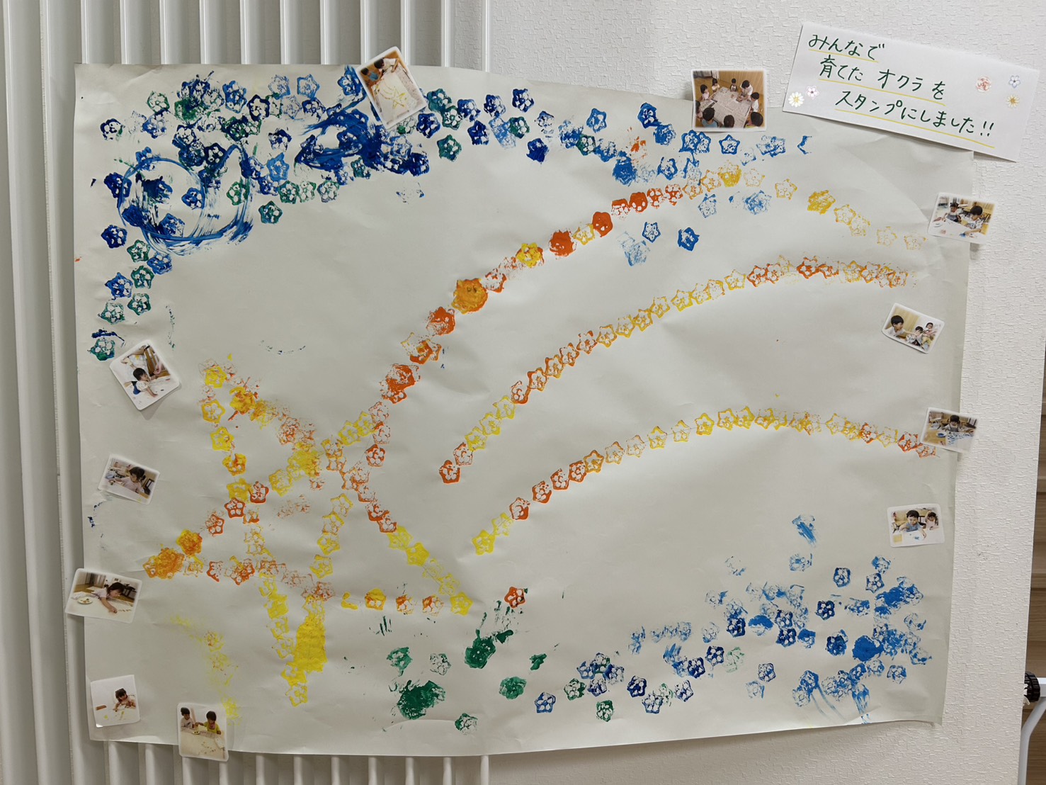 大きくなり硬くなったオクラはスタンプに✨✨「ご自由にお持ち帰りください」とオクラをお家に持って帰ってもらい、保護者の方とも保育園の野菜の話を共有することができました🌠