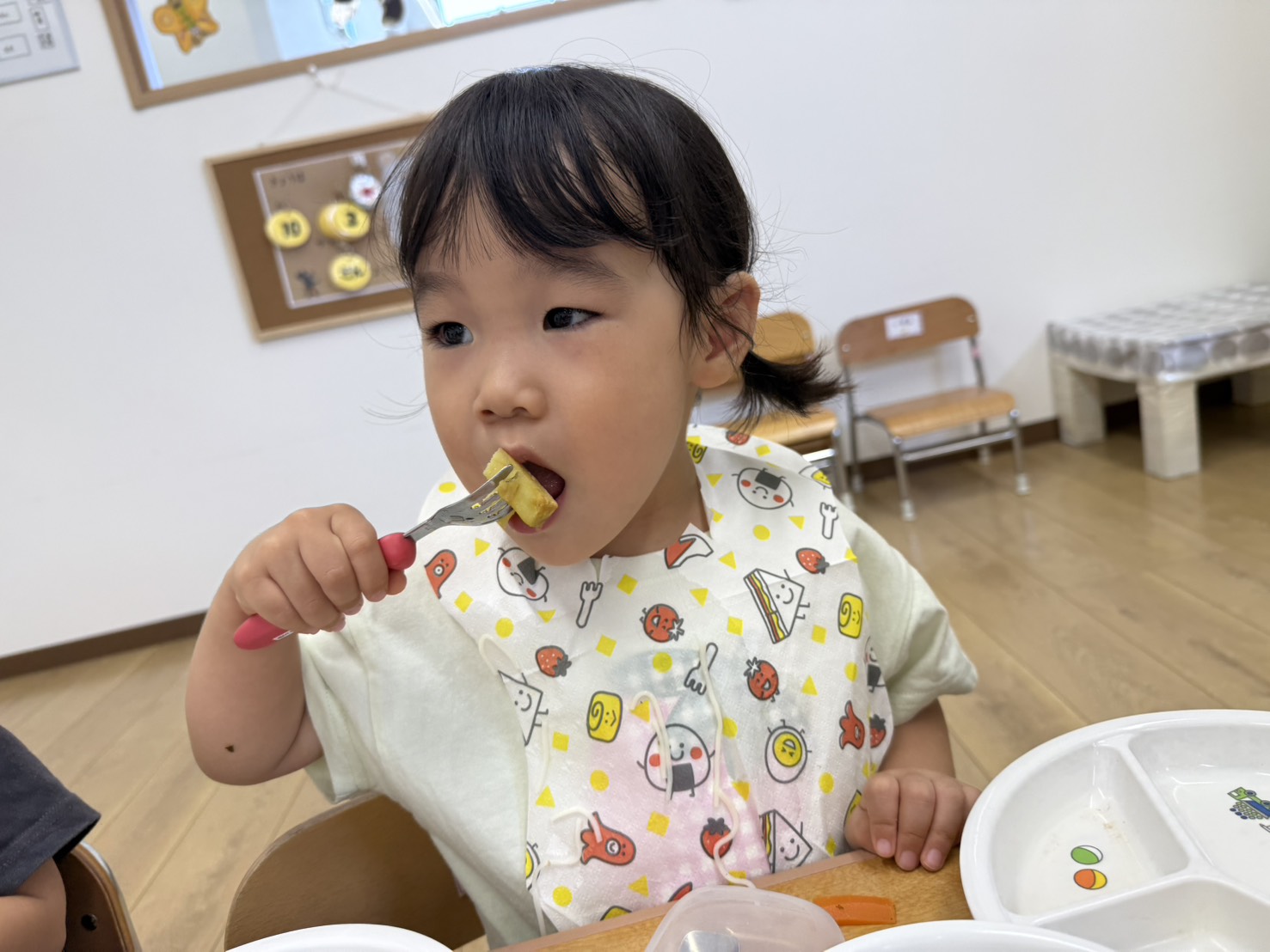 りこの森保育園の給食では、柿やさつまいもも登場し、秋を感じていますよ🎵