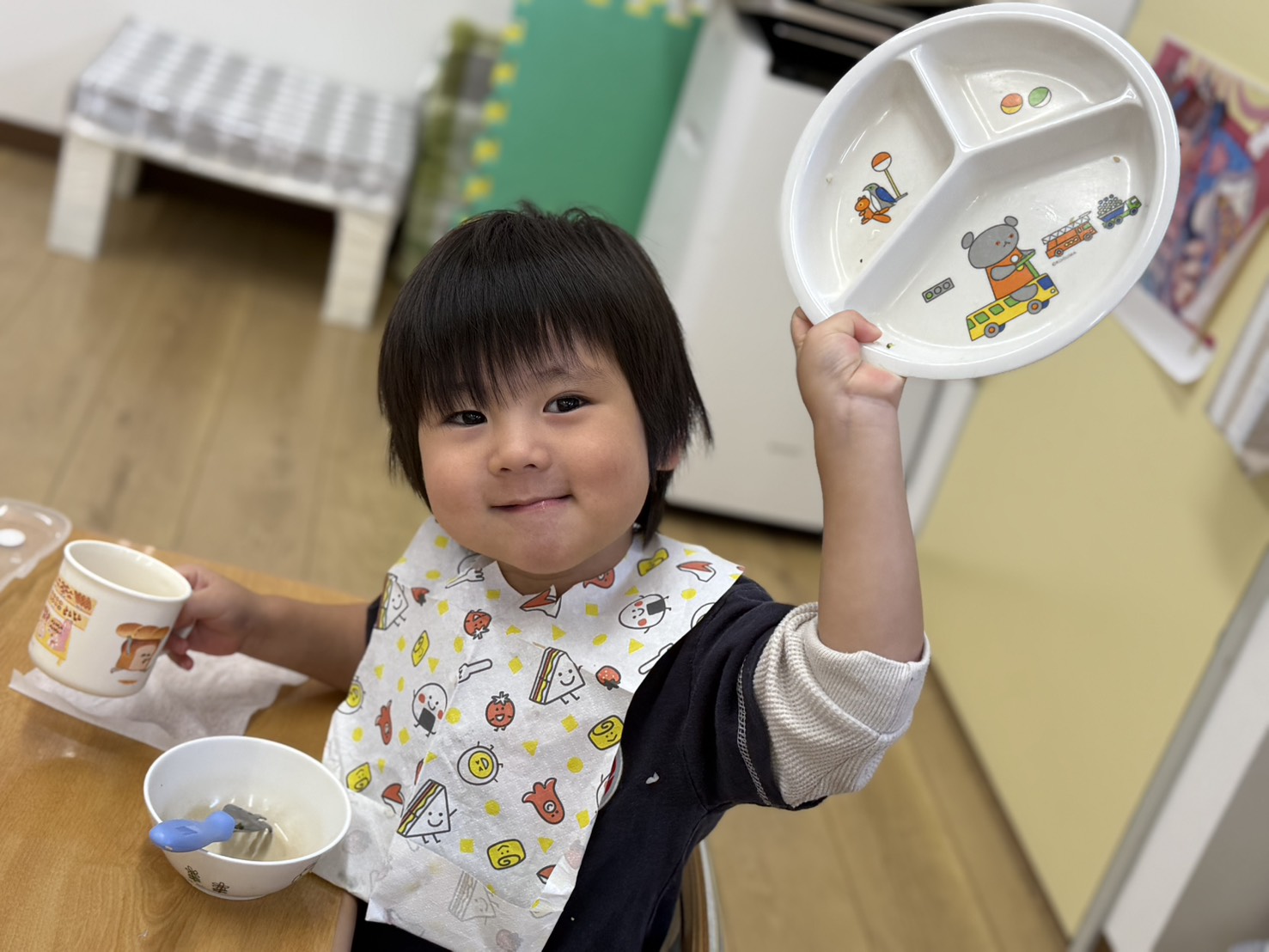 ピカピカになったお皿を見せてくれました😊