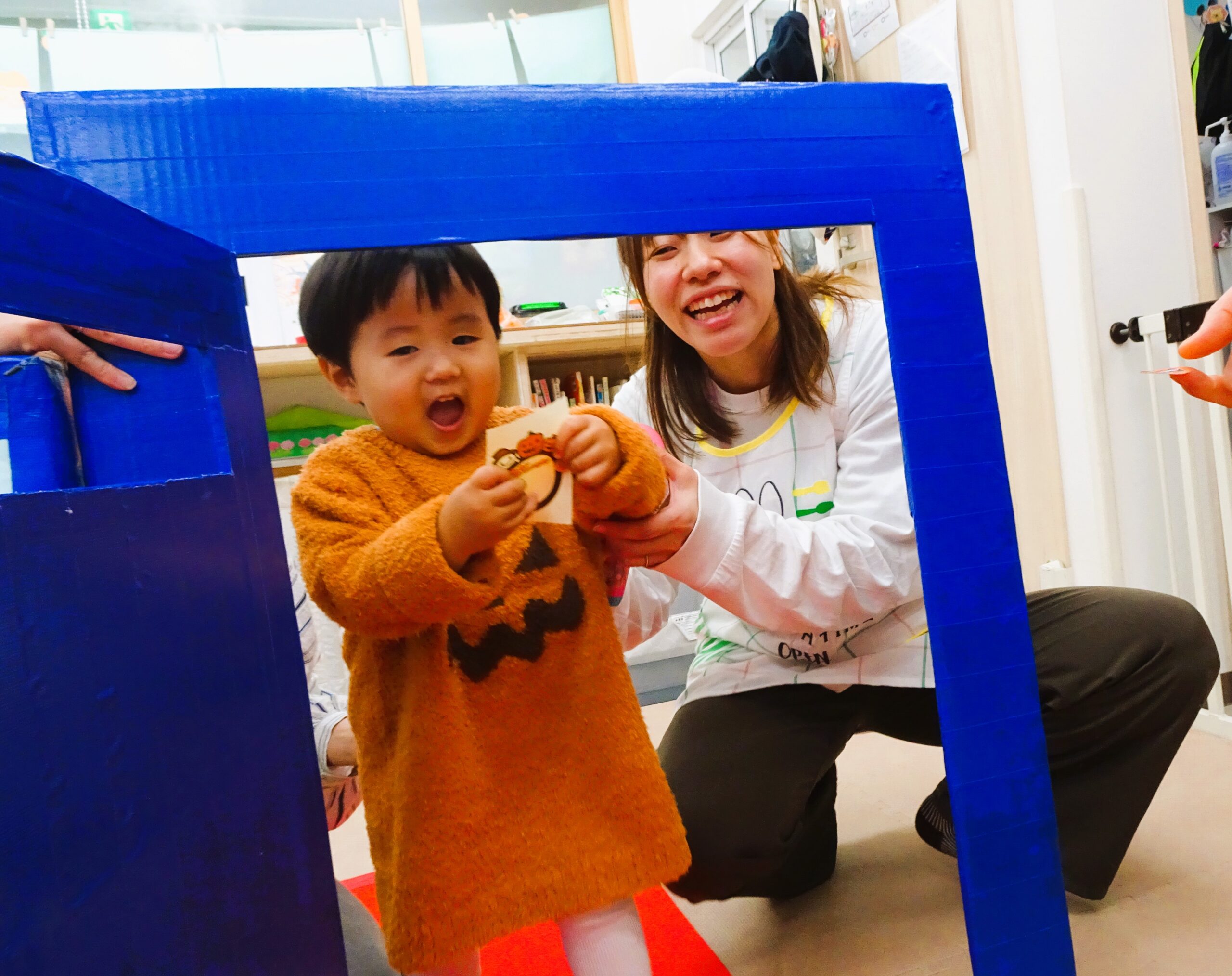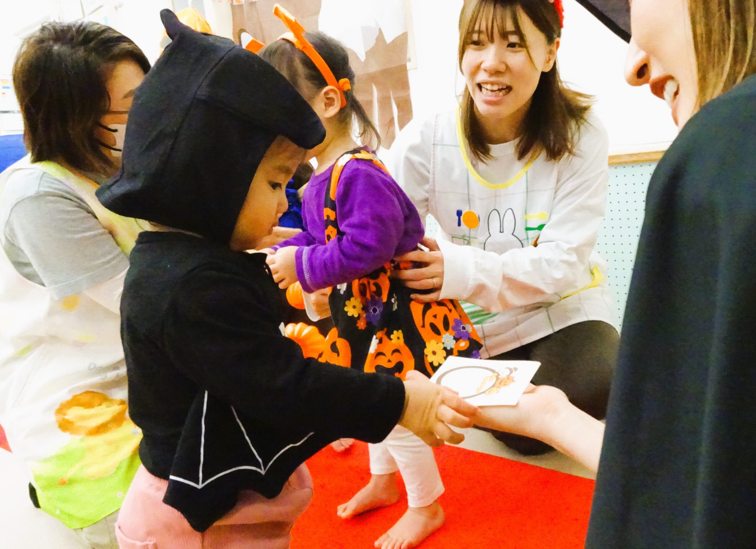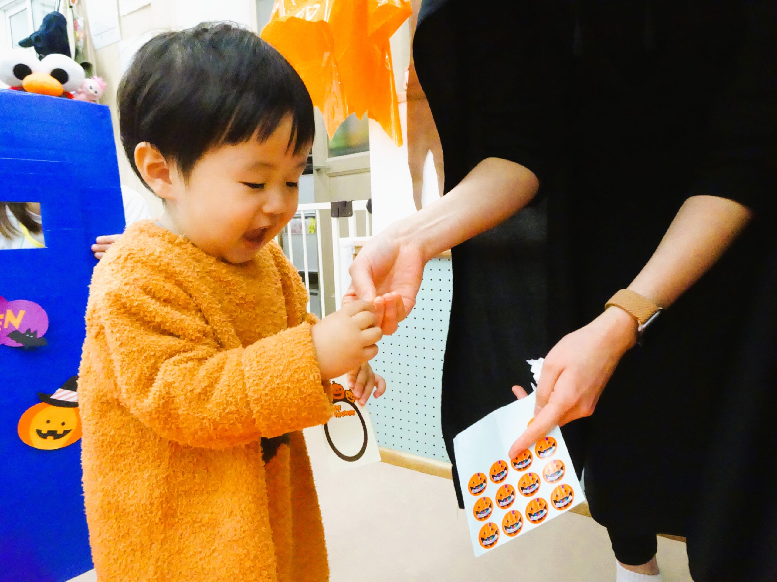 「トリックオアトリート!」と、合言葉を伝えてシールをもらっていたのでした👏♡