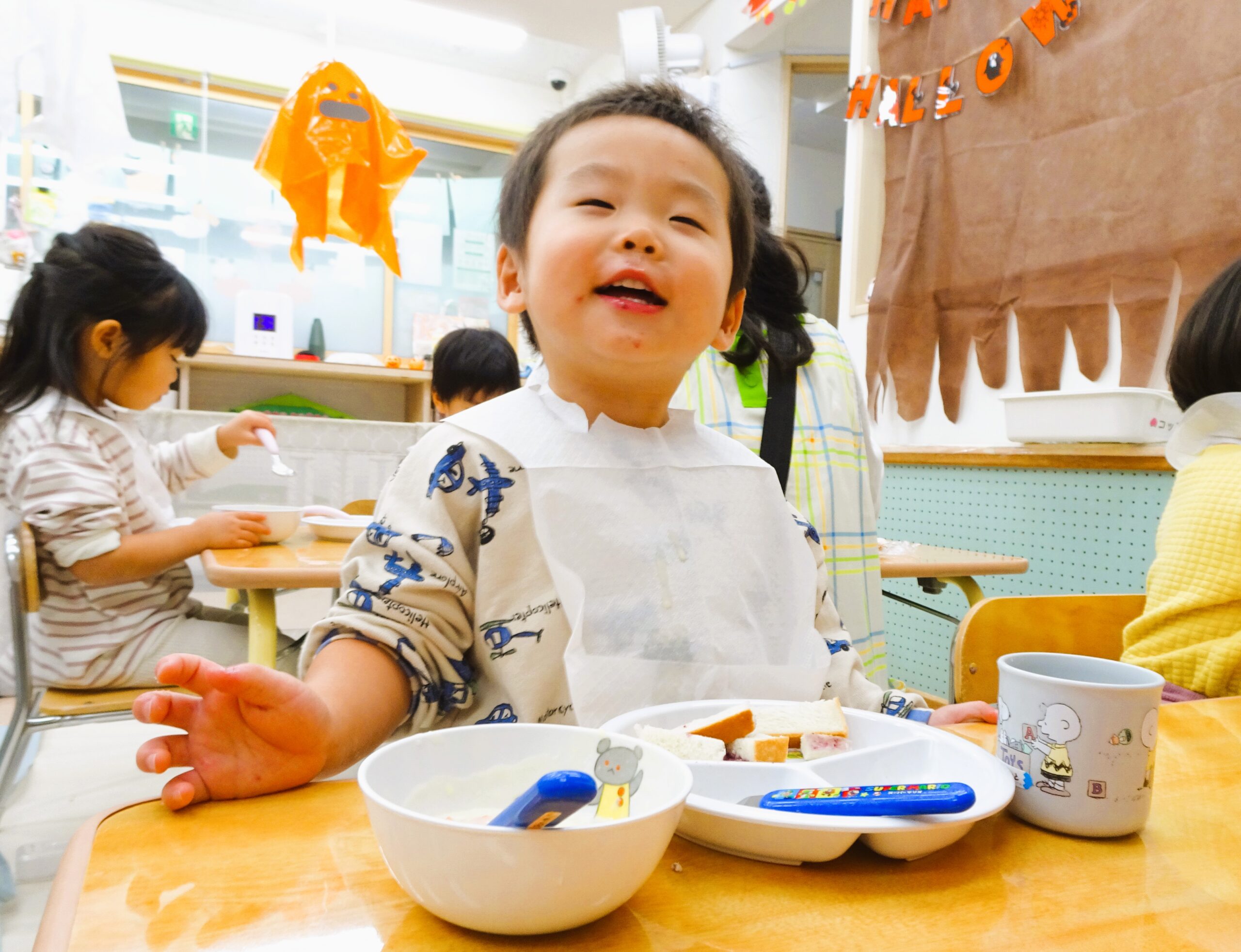 今日は給食もおやつもハロウィンメニュー🎃となり、
