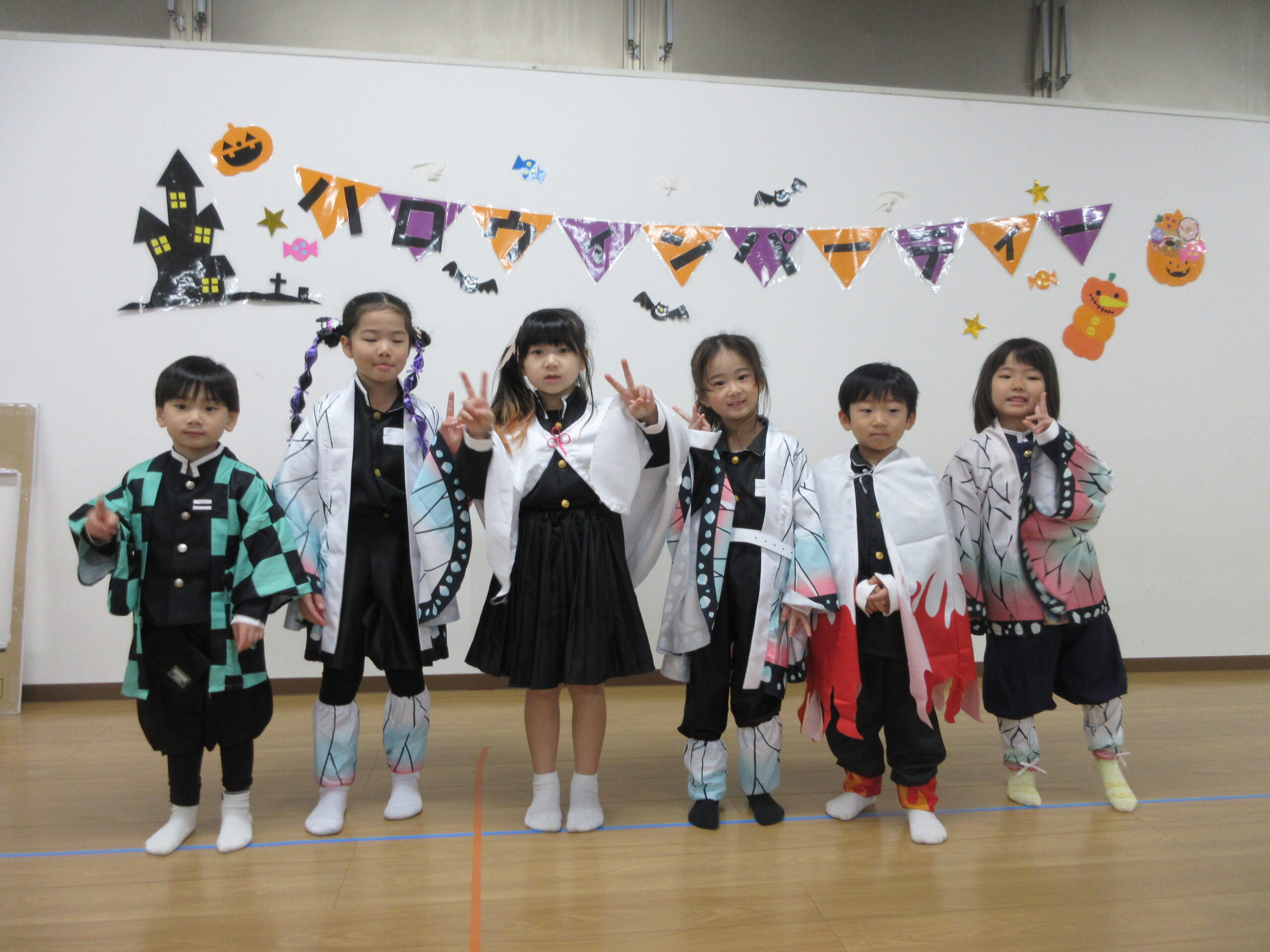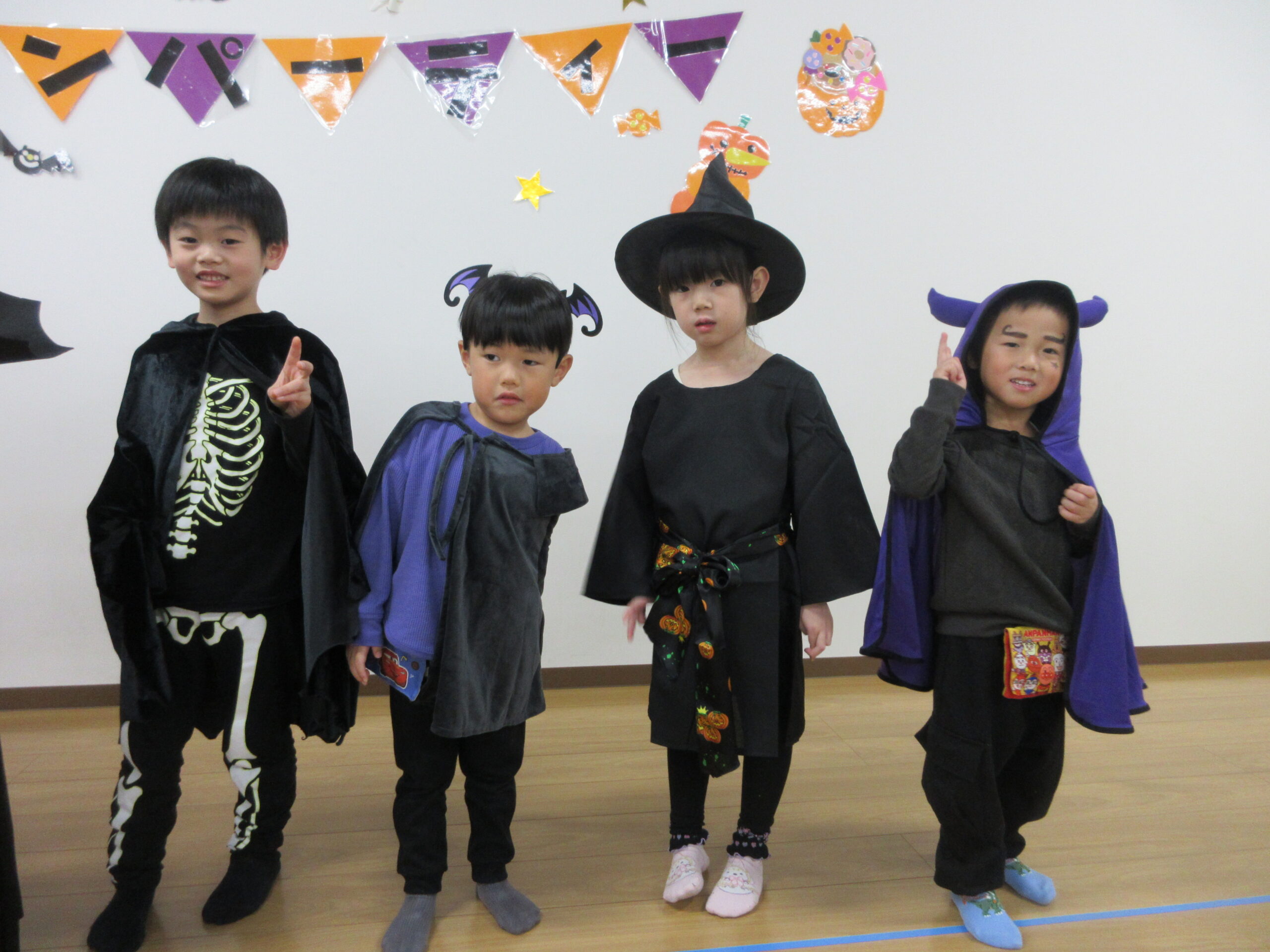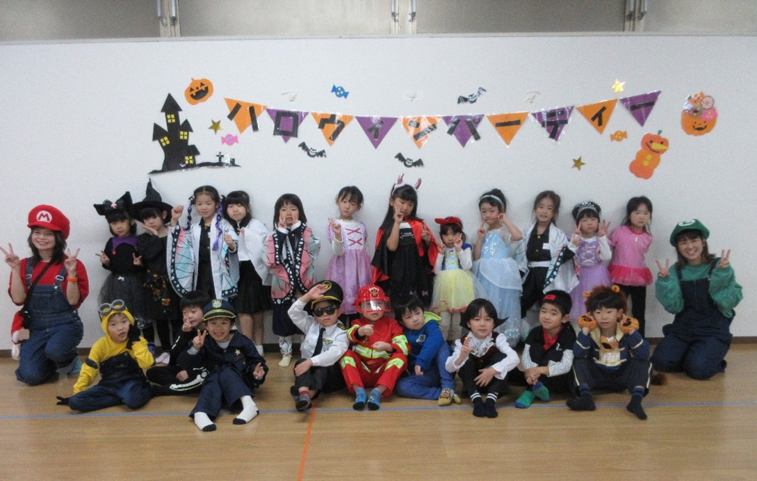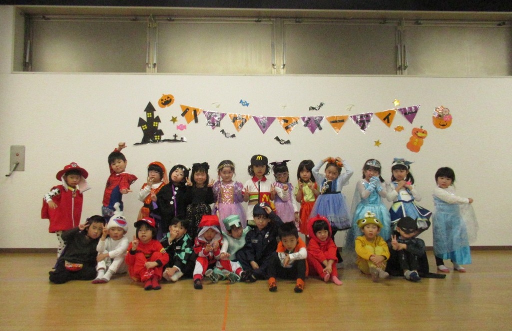 もも・ばなな・ぶどう・めろんぐみさんはホールで、いちご・みかんぐみさんはお部屋でハロウィンパーティーを楽しみます🎃🥳