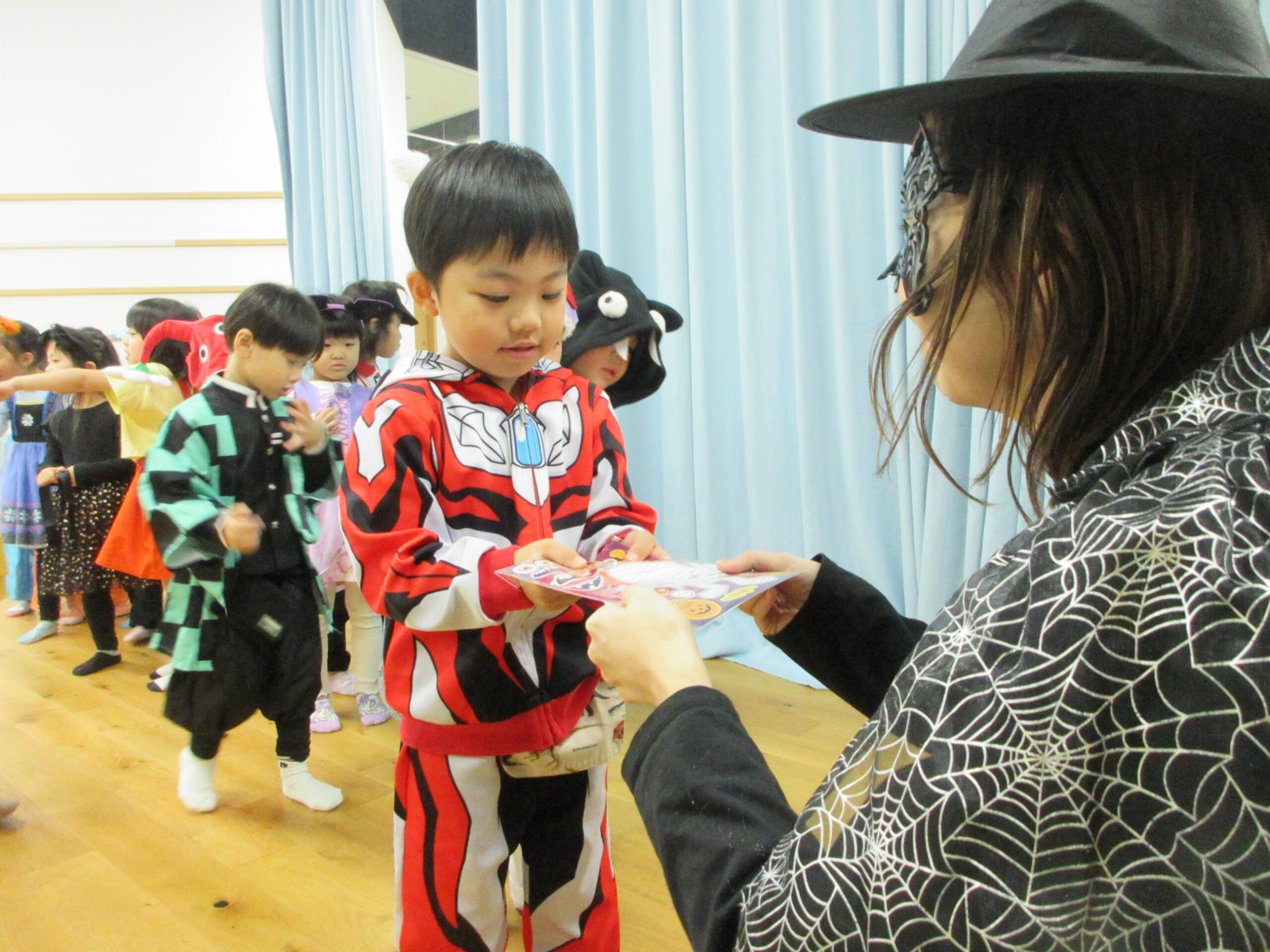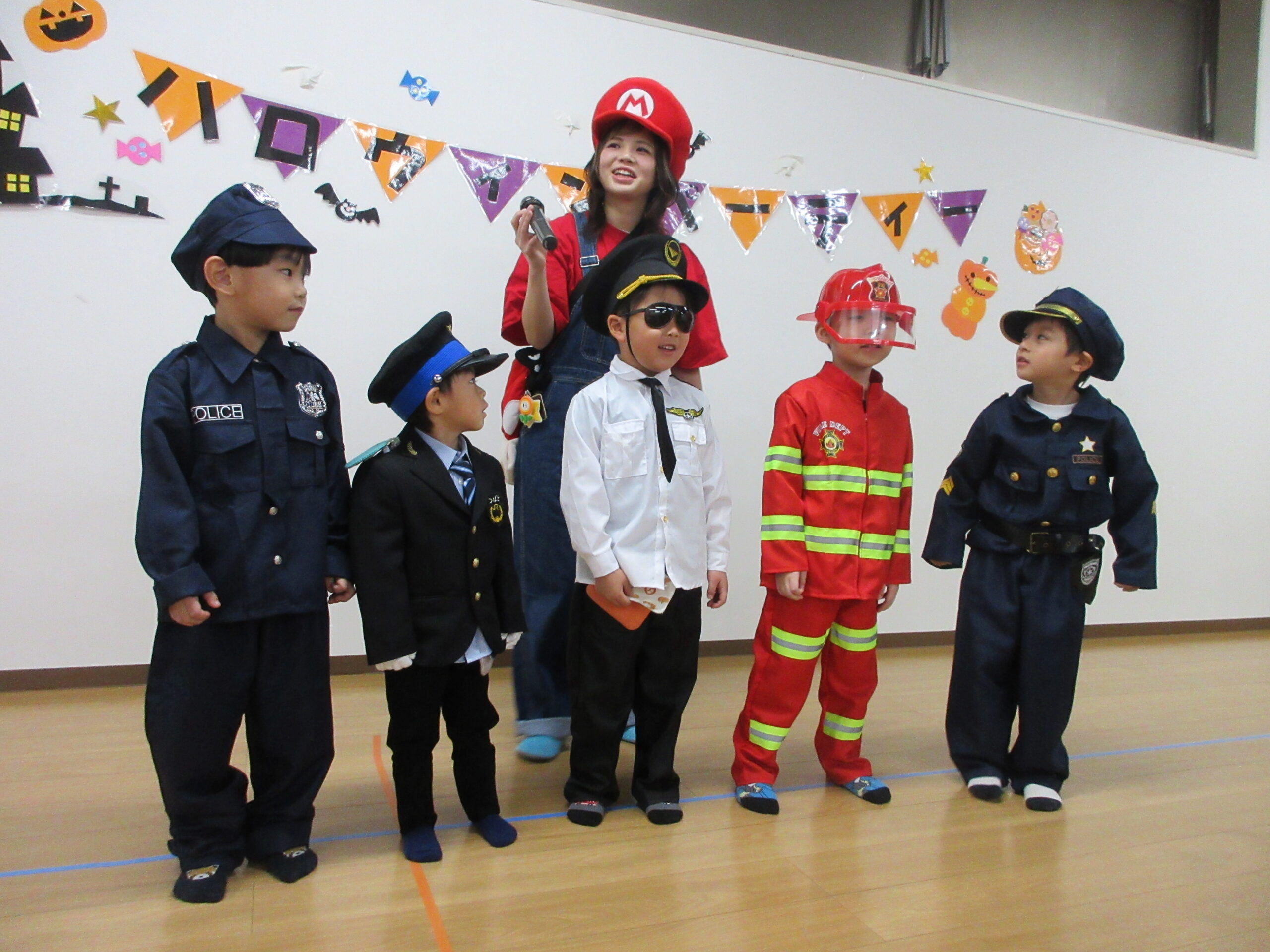 ホールでは、仮装を紹介するファッションショーが行われ、みんなはにかみながらも、お友達の前で自分のコスチュームを披露していましたよ👀👏✨