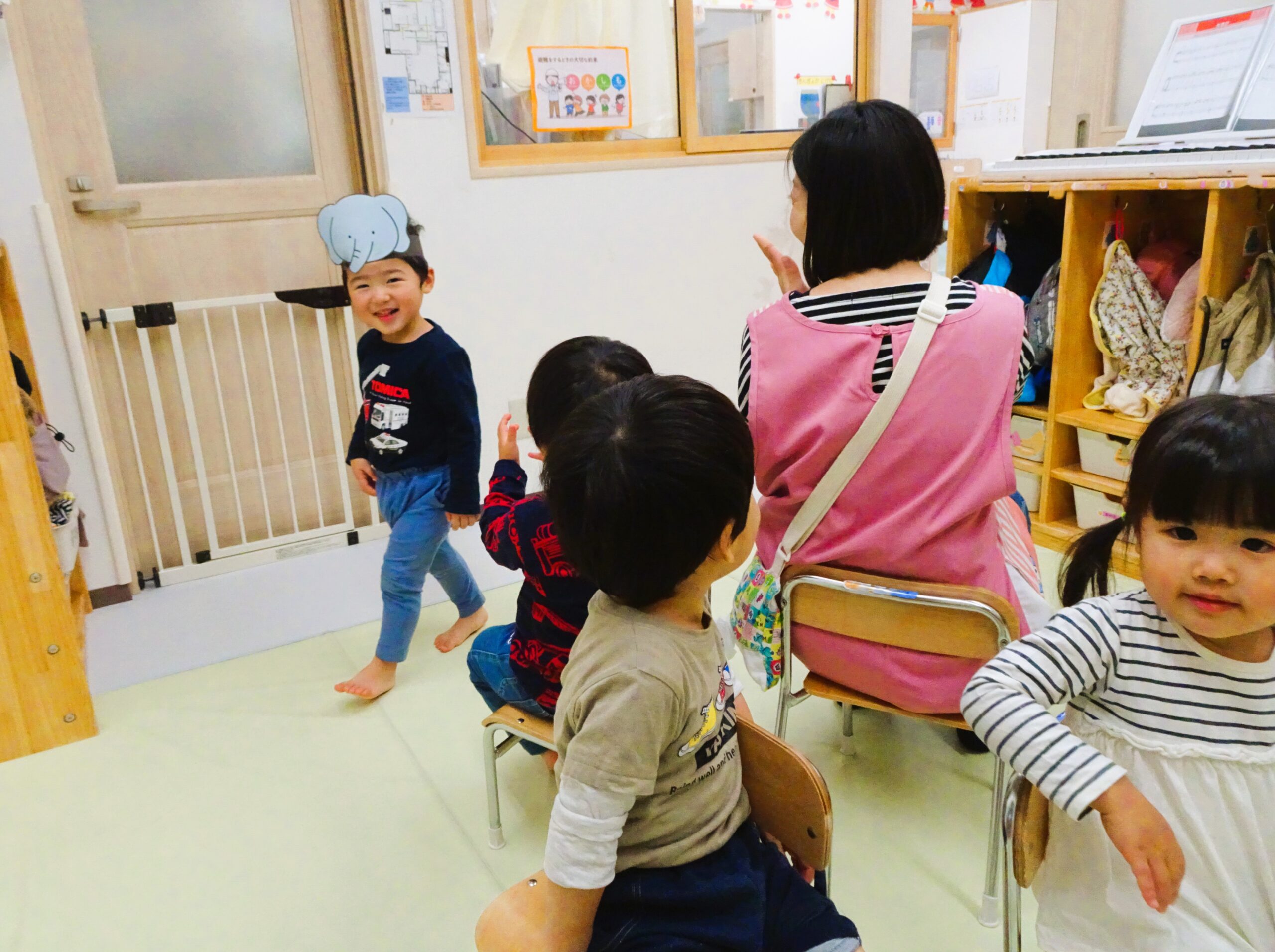 イス取りゲームの要素も交え、座れなかったお友達はゾウさん役となり、