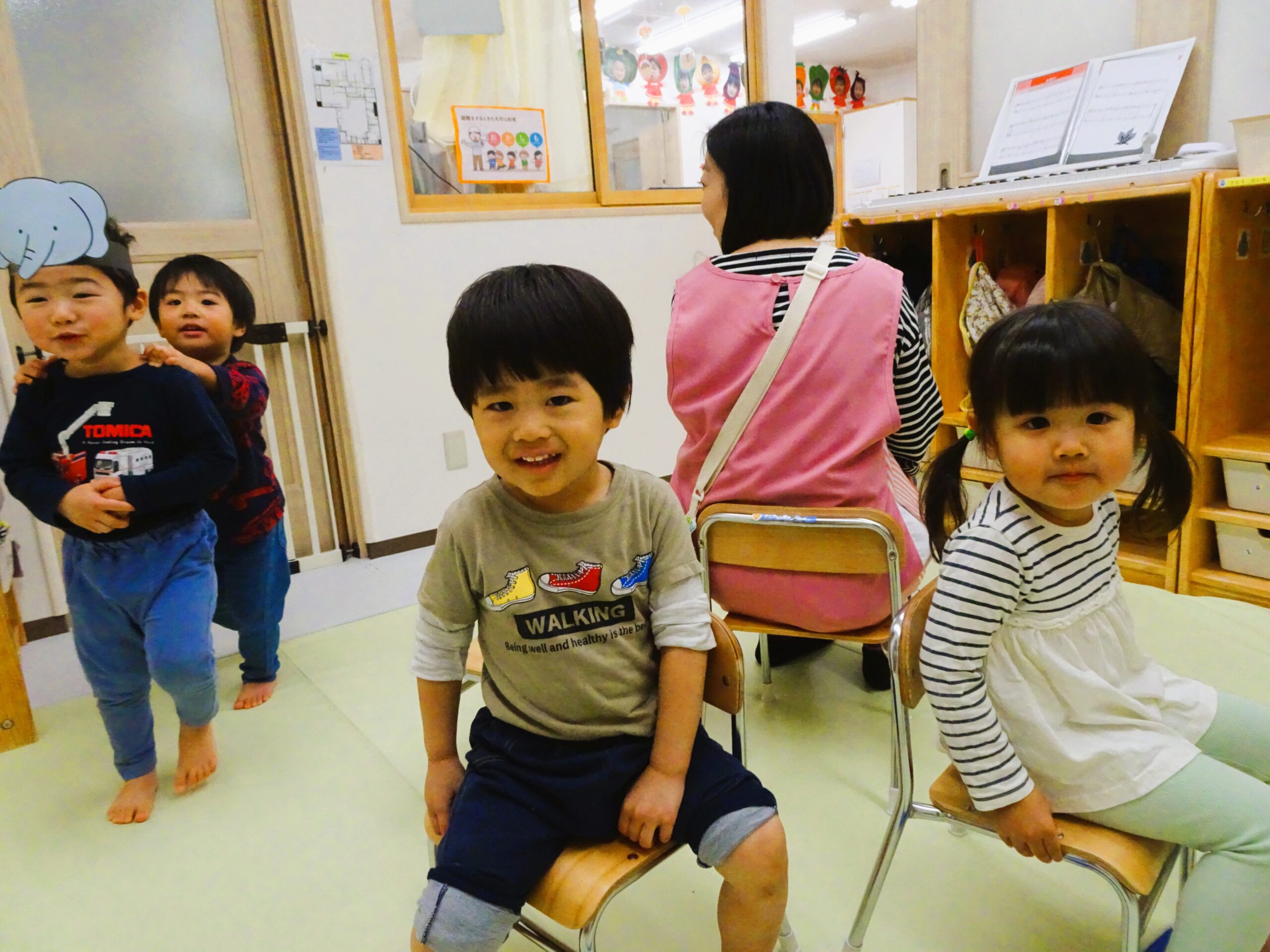 座っているお友達は、名前を呼ばれるのをドキドキしながら待っています🤭