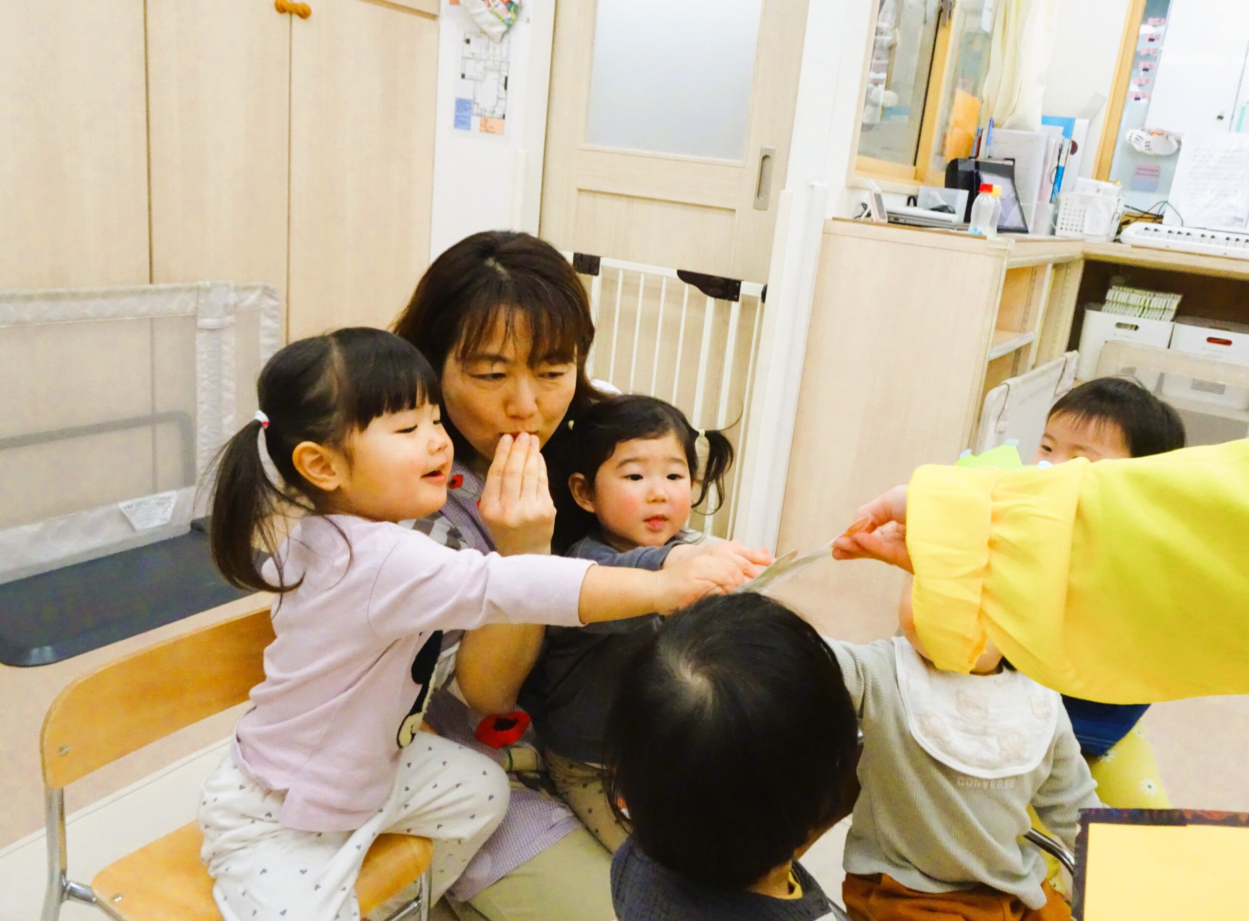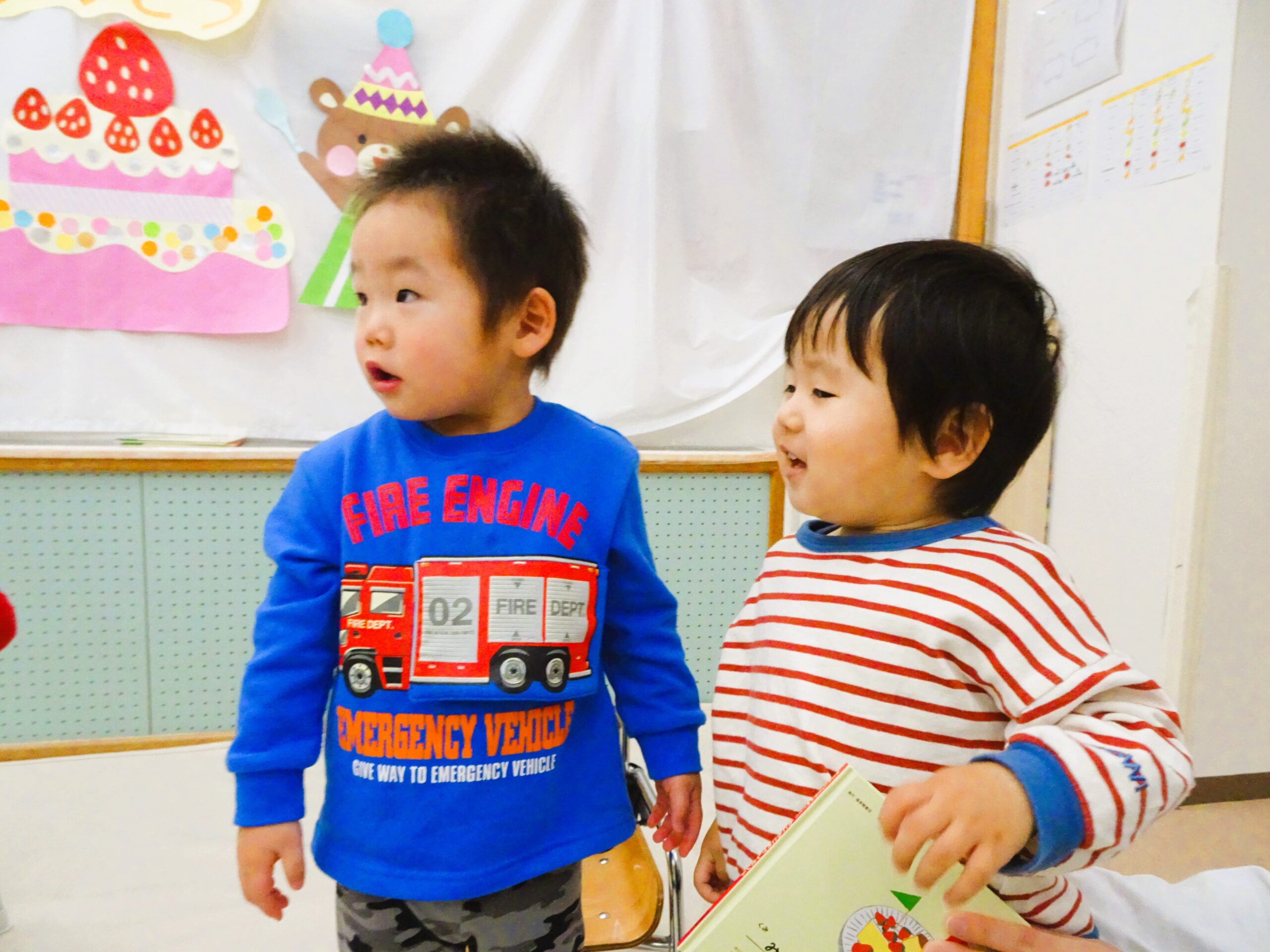 好きな食べ物などを先生と一緒に教えてくれたお誕生児さん達😊