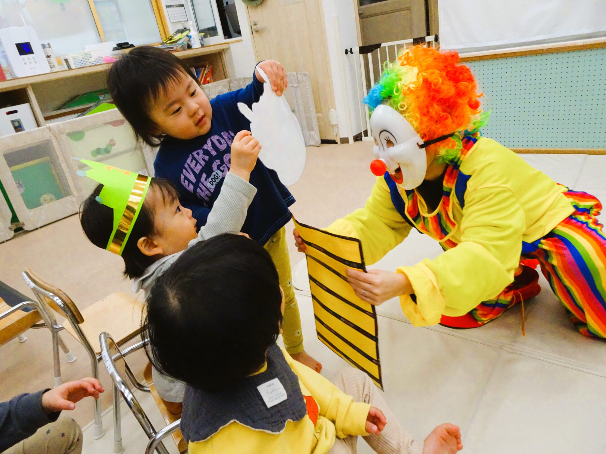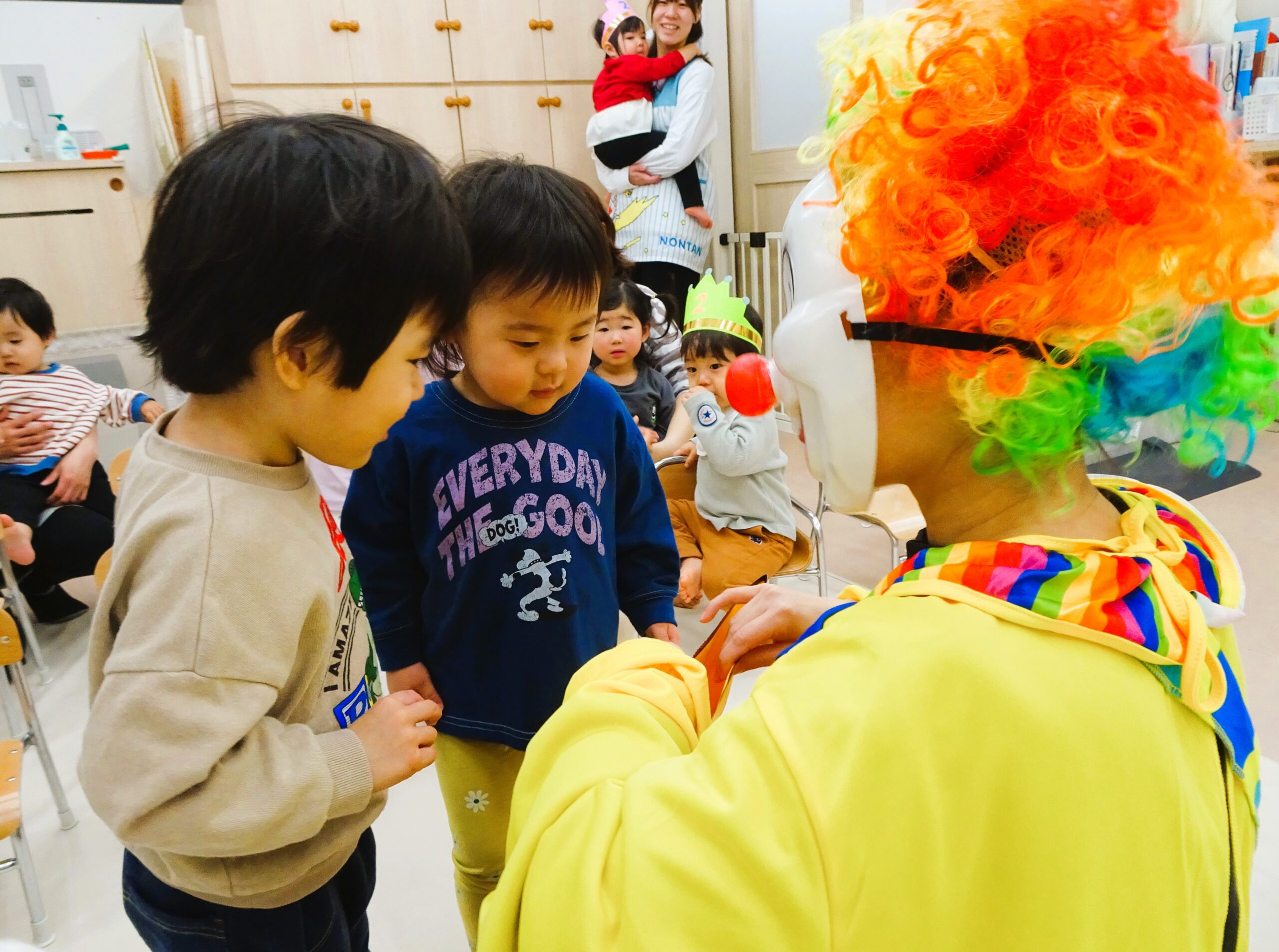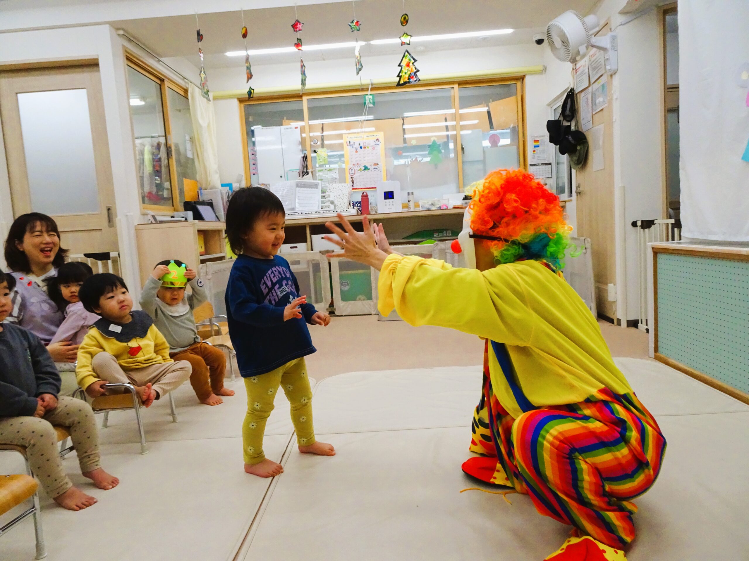 拍手をして喜んだり、見慣れないピエロの姿に驚いたりと、反応はそれぞれでしたが、