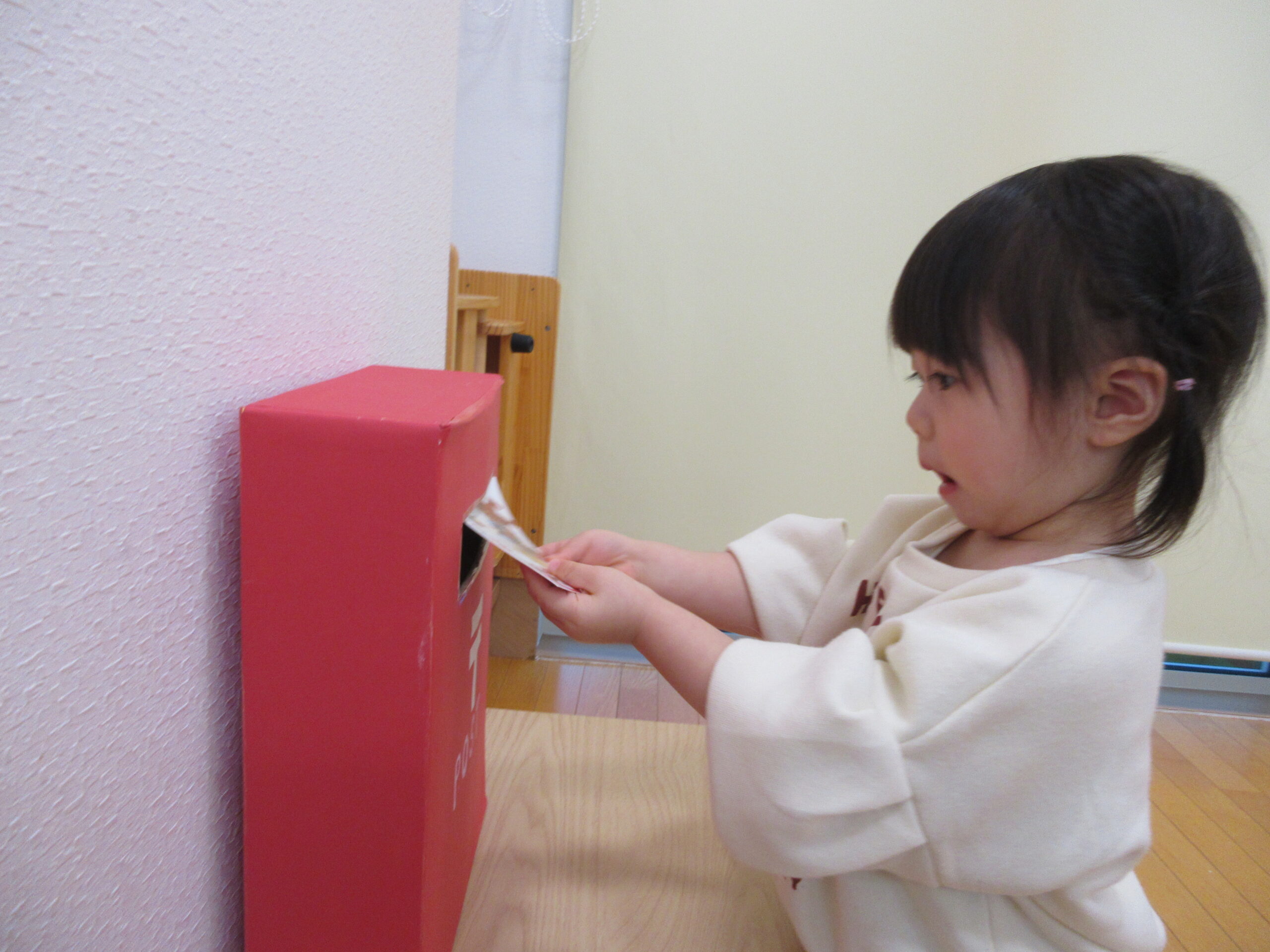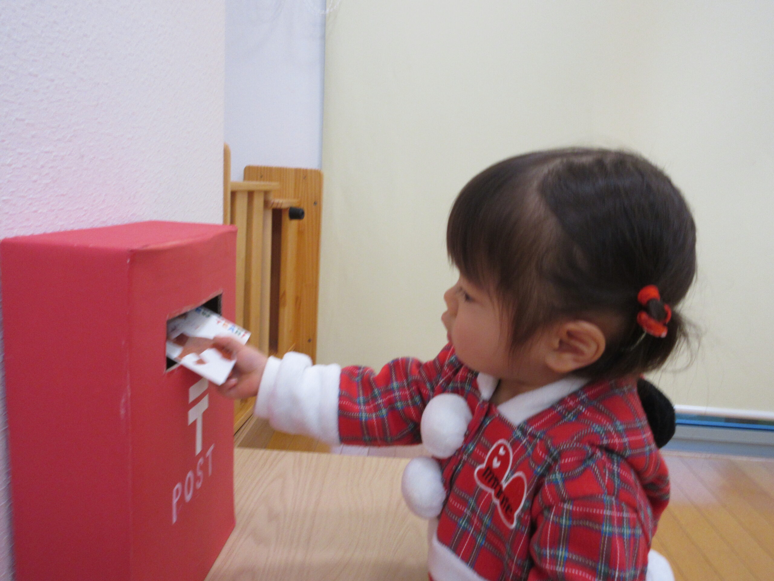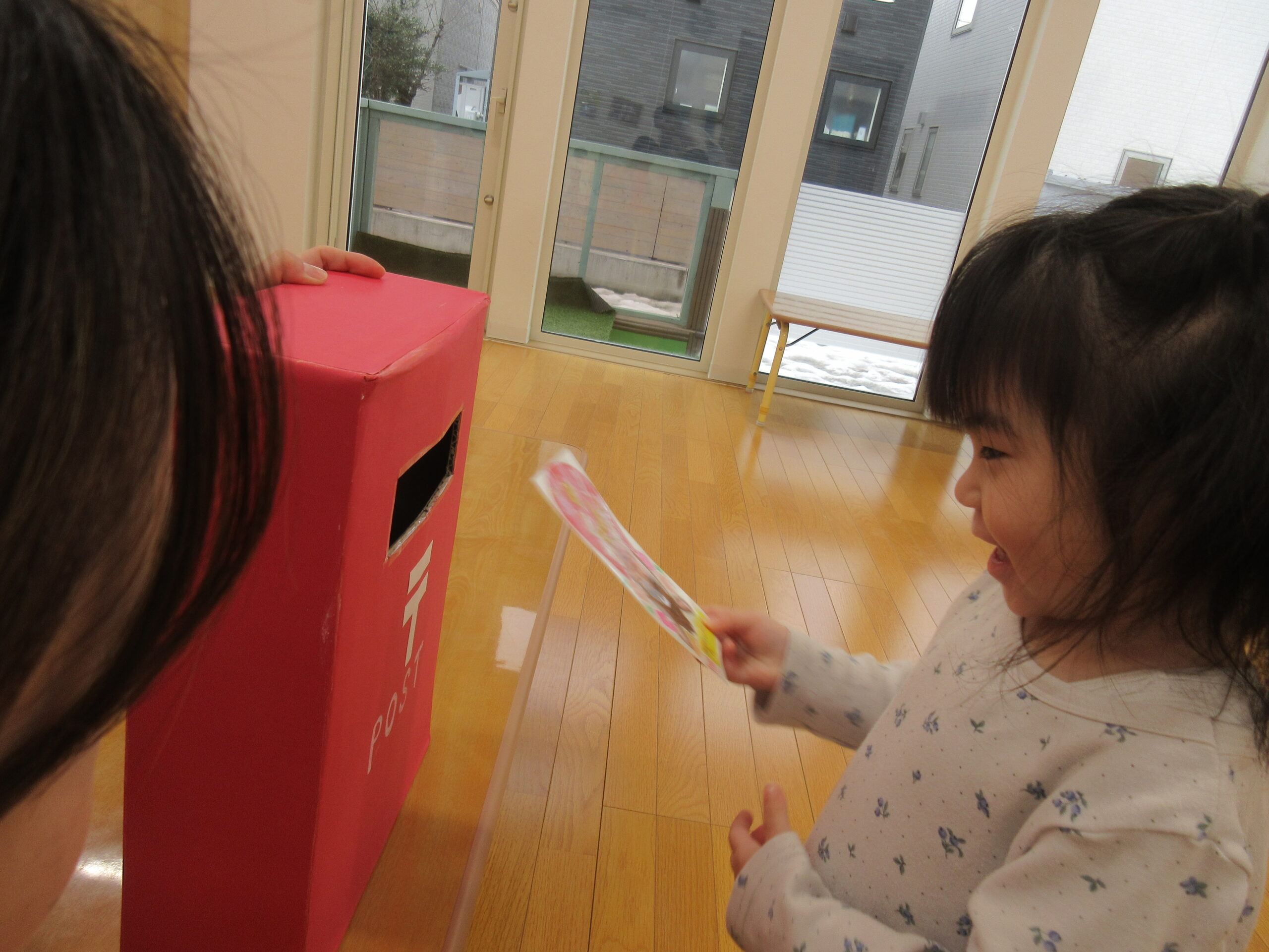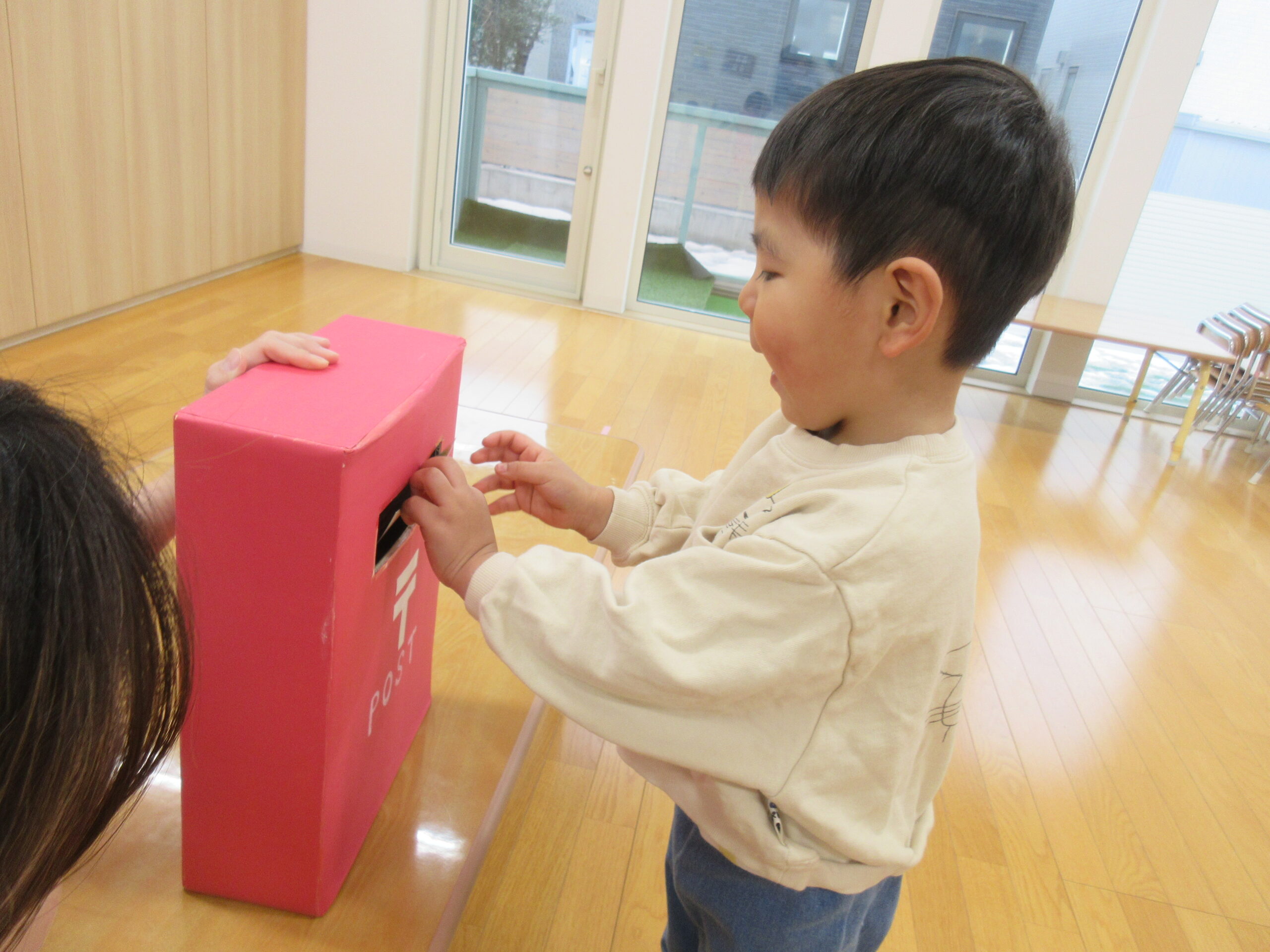 完成した年賀状は、大切な人に「届きますように💛」「郵便屋さん、お願いしまーす!」と、一人ずつ”こくあの彩保育園郵便ポスト📮”へ投函!!
