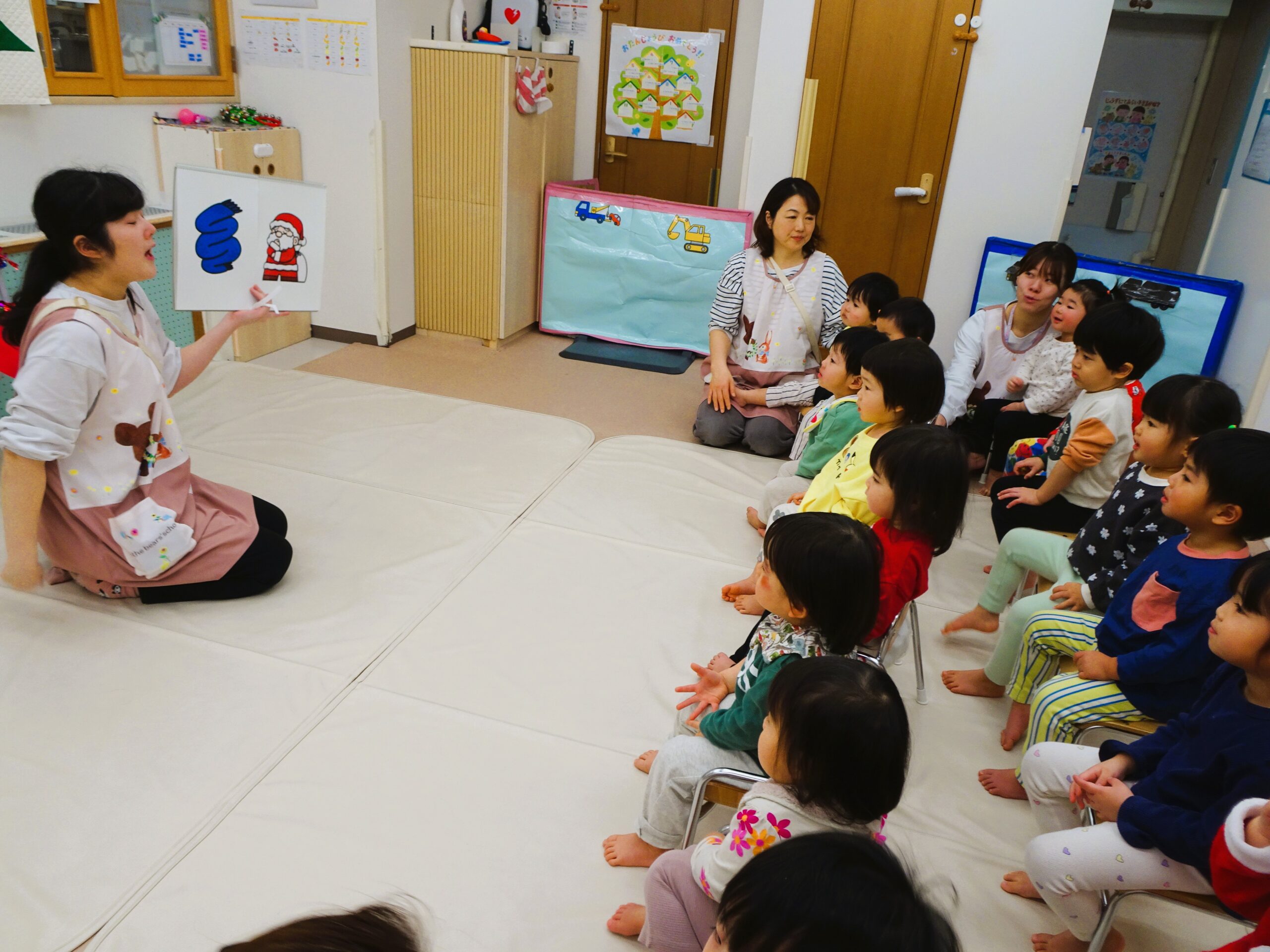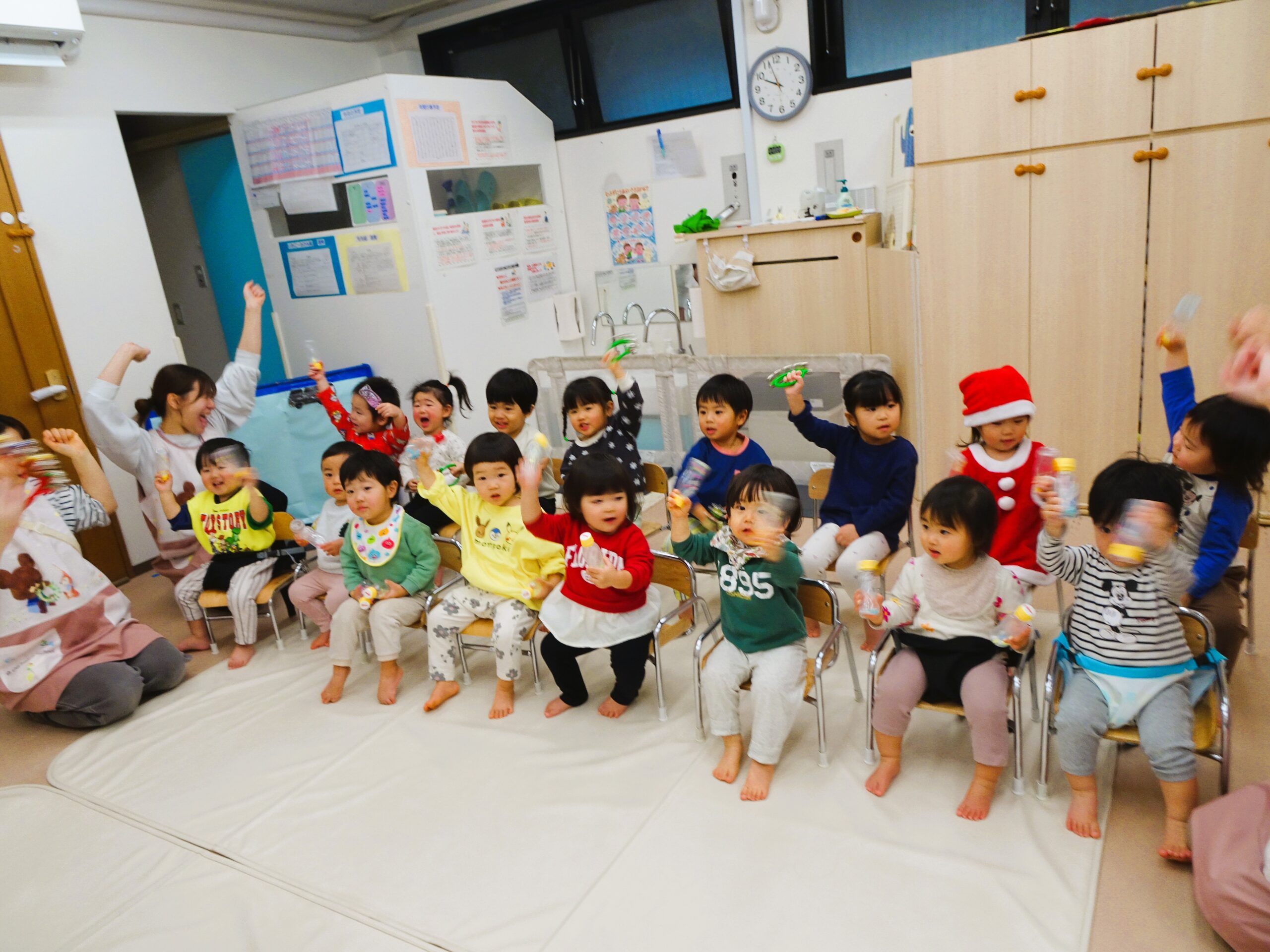 みんなで『♪あわてんぼうのサンタクロース』を歌って楽器演奏をしたり、