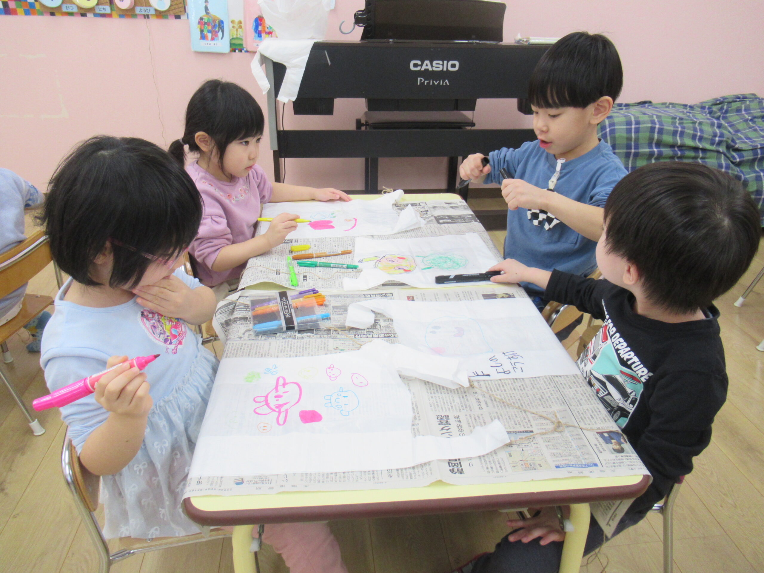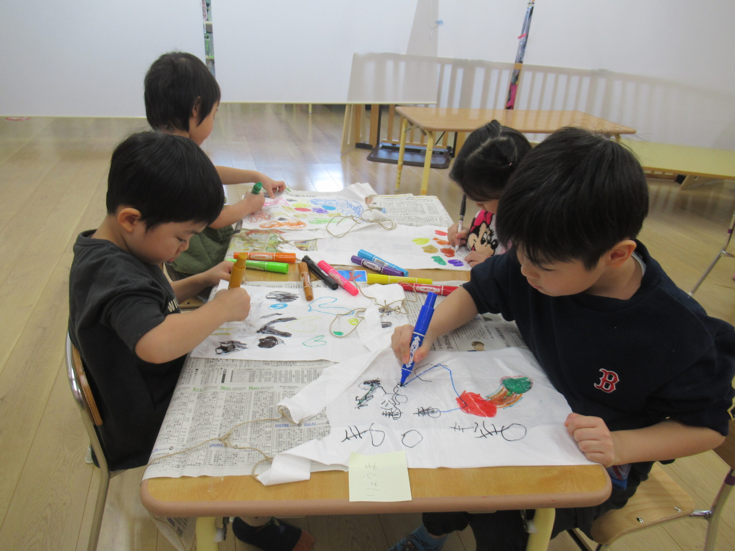 お正月遊び第一弾で、凧揚げをしました!子どもたちが自分で絵をかいて、