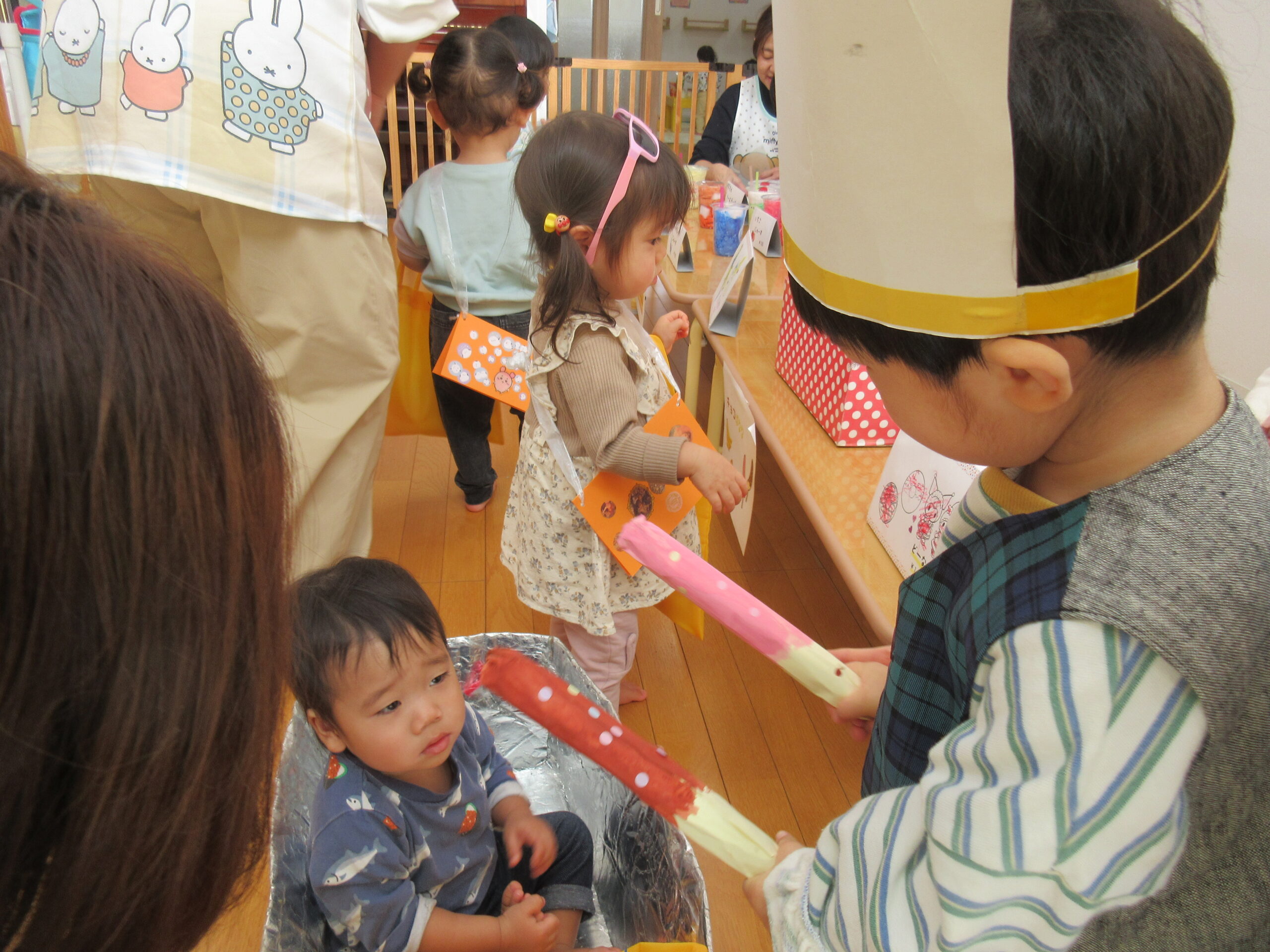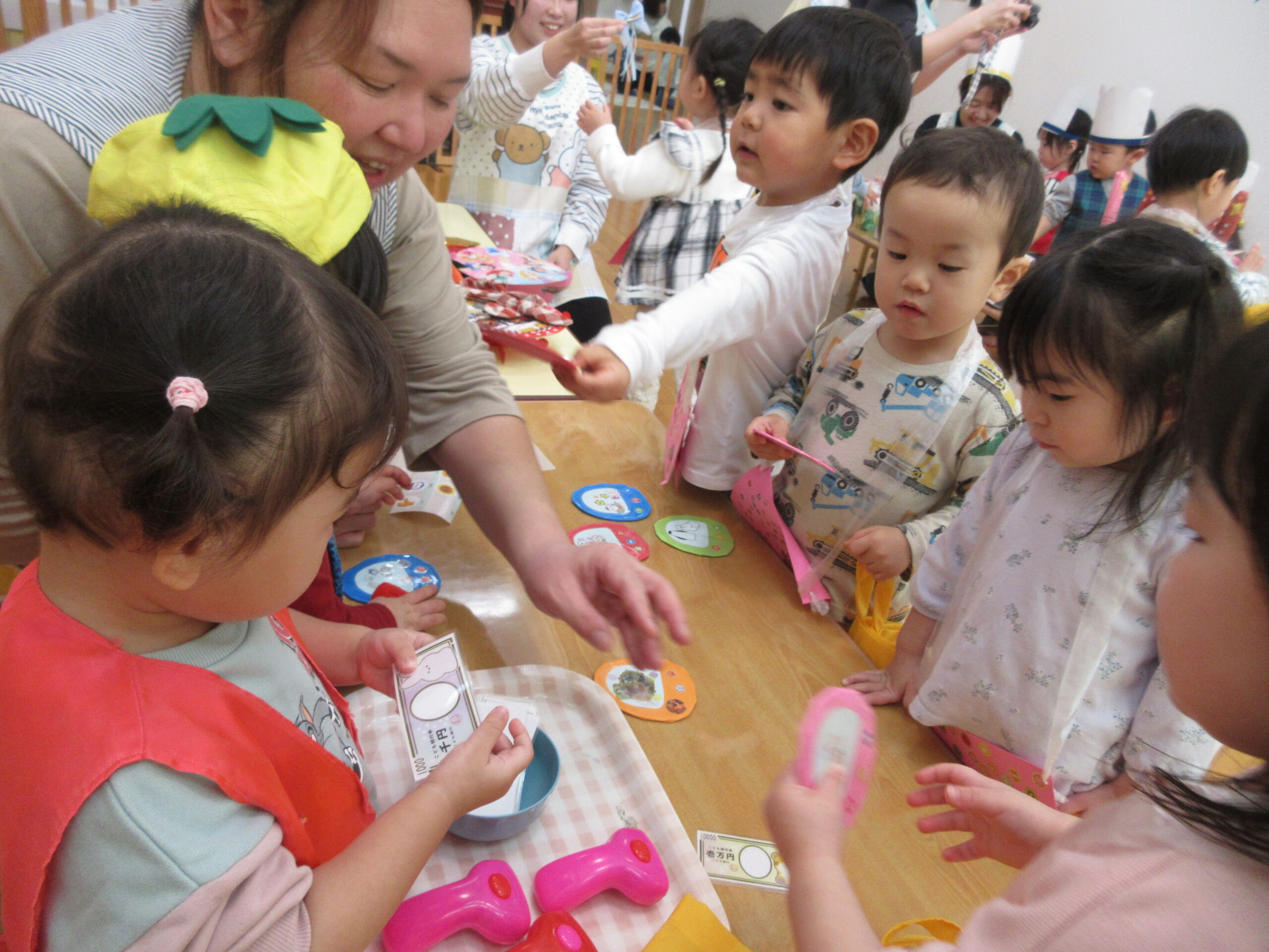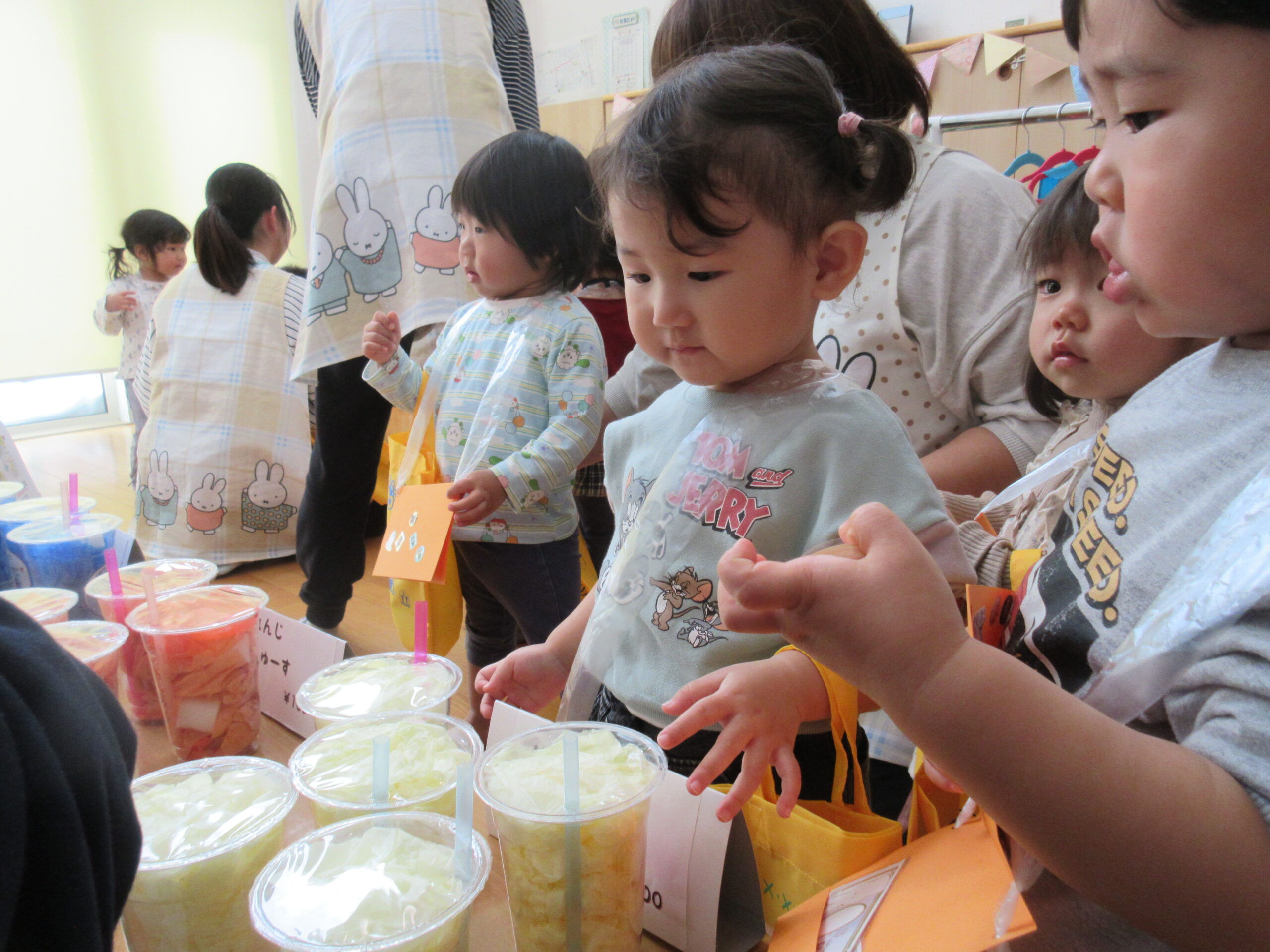 次にみかんぐみのお友達が店員さんに挑戦です!