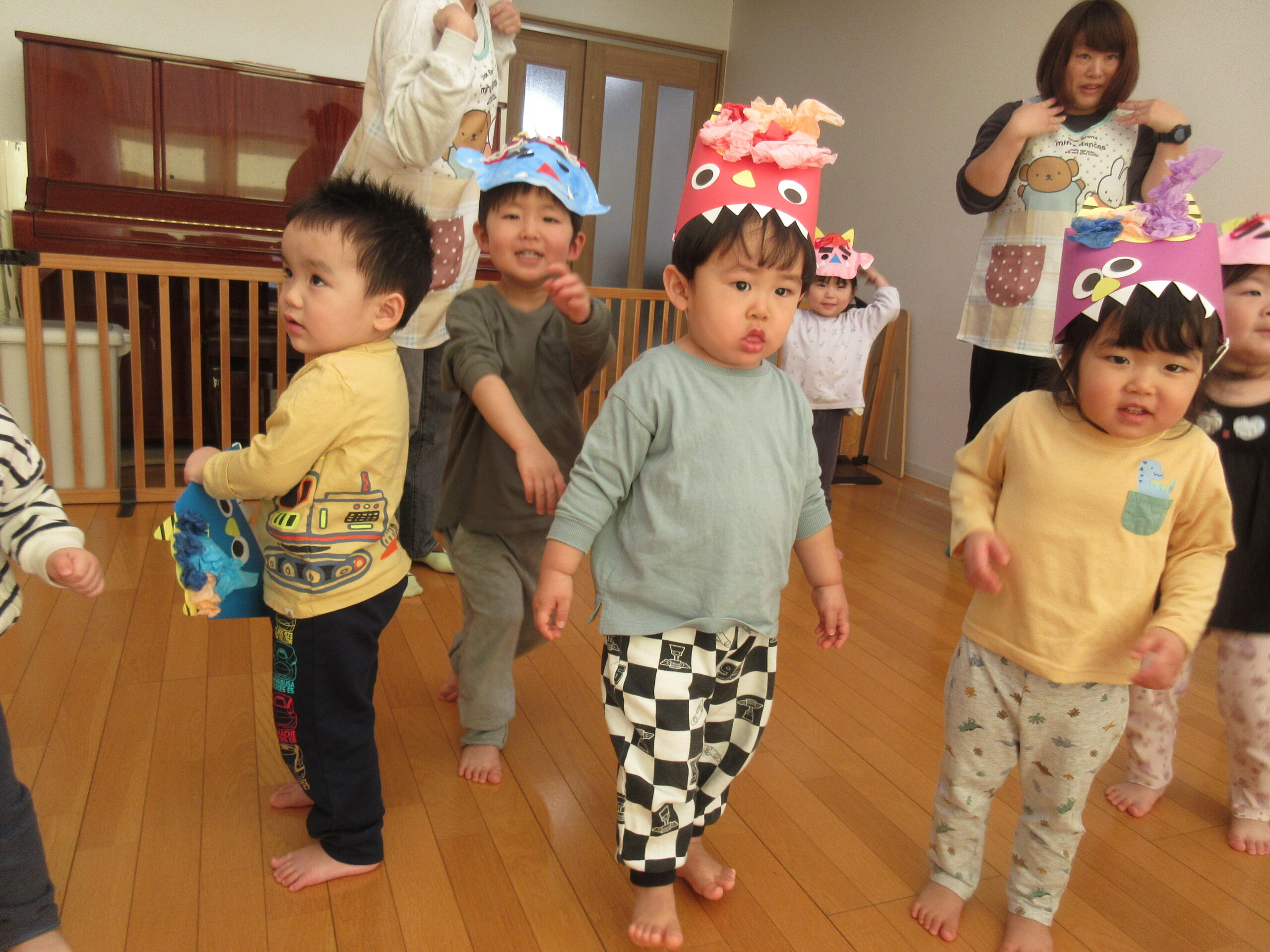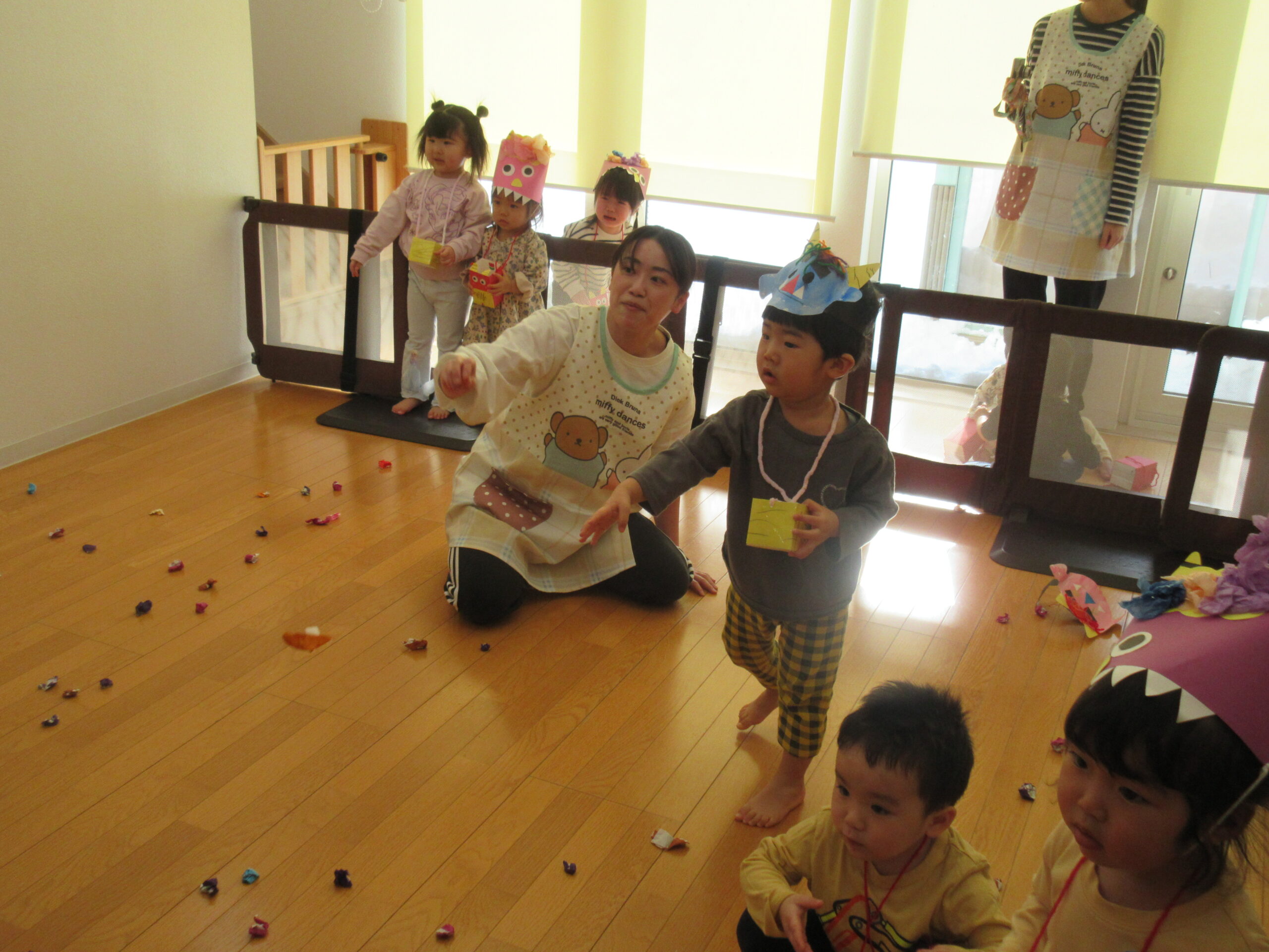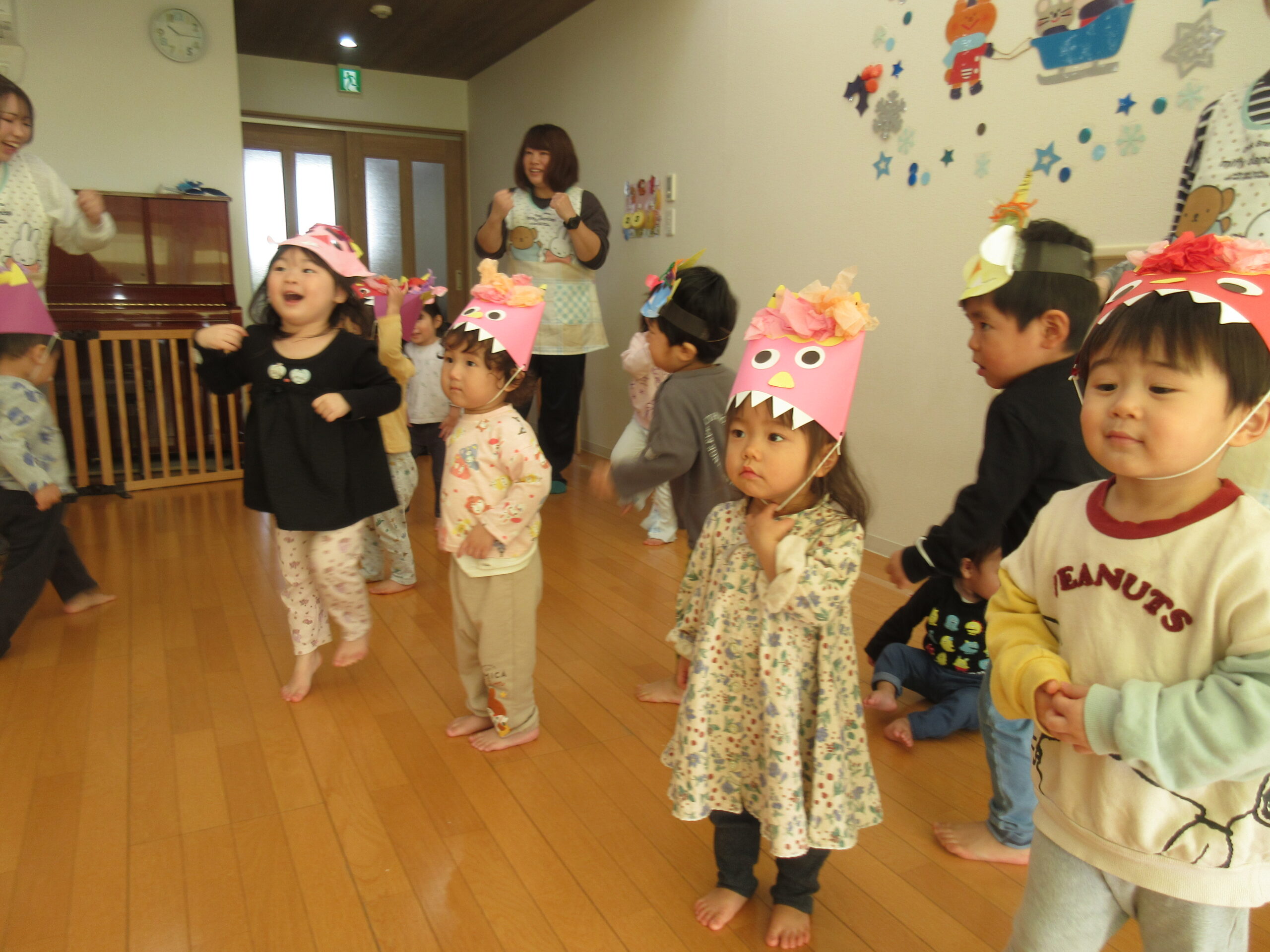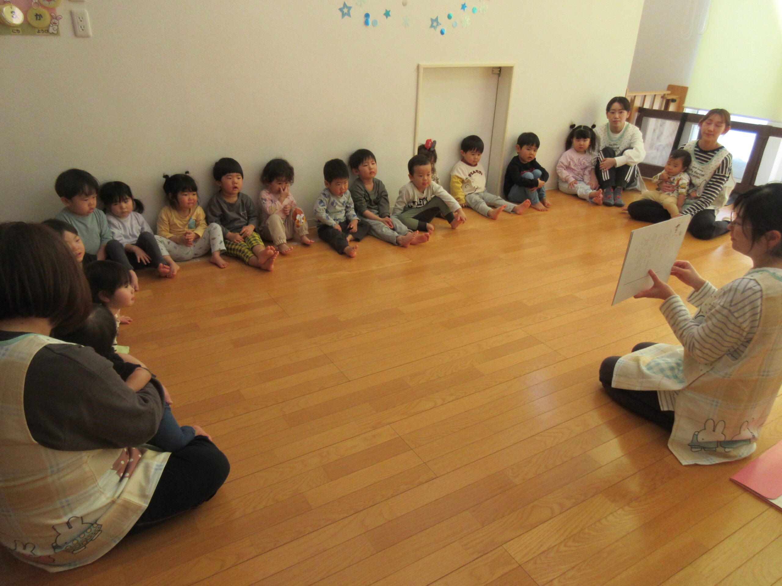 みんなが集まったところで、まずは紙芝居を見ました!節分についての紙芝居でしたが、みんな真剣な表情👀
