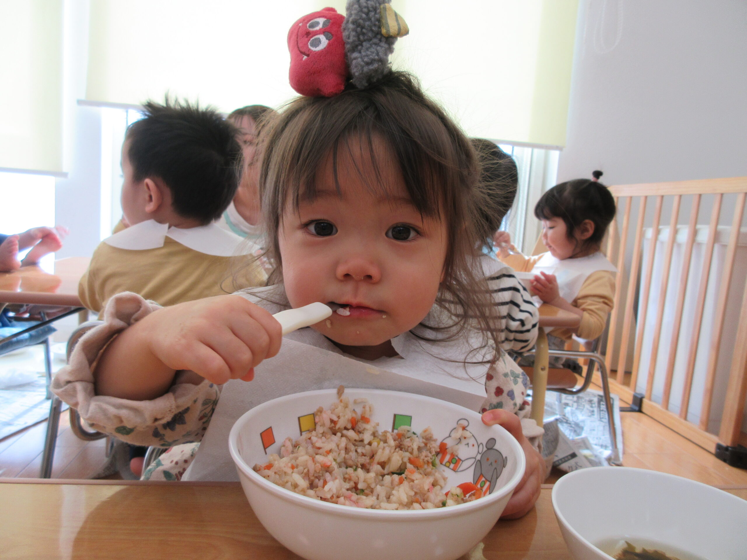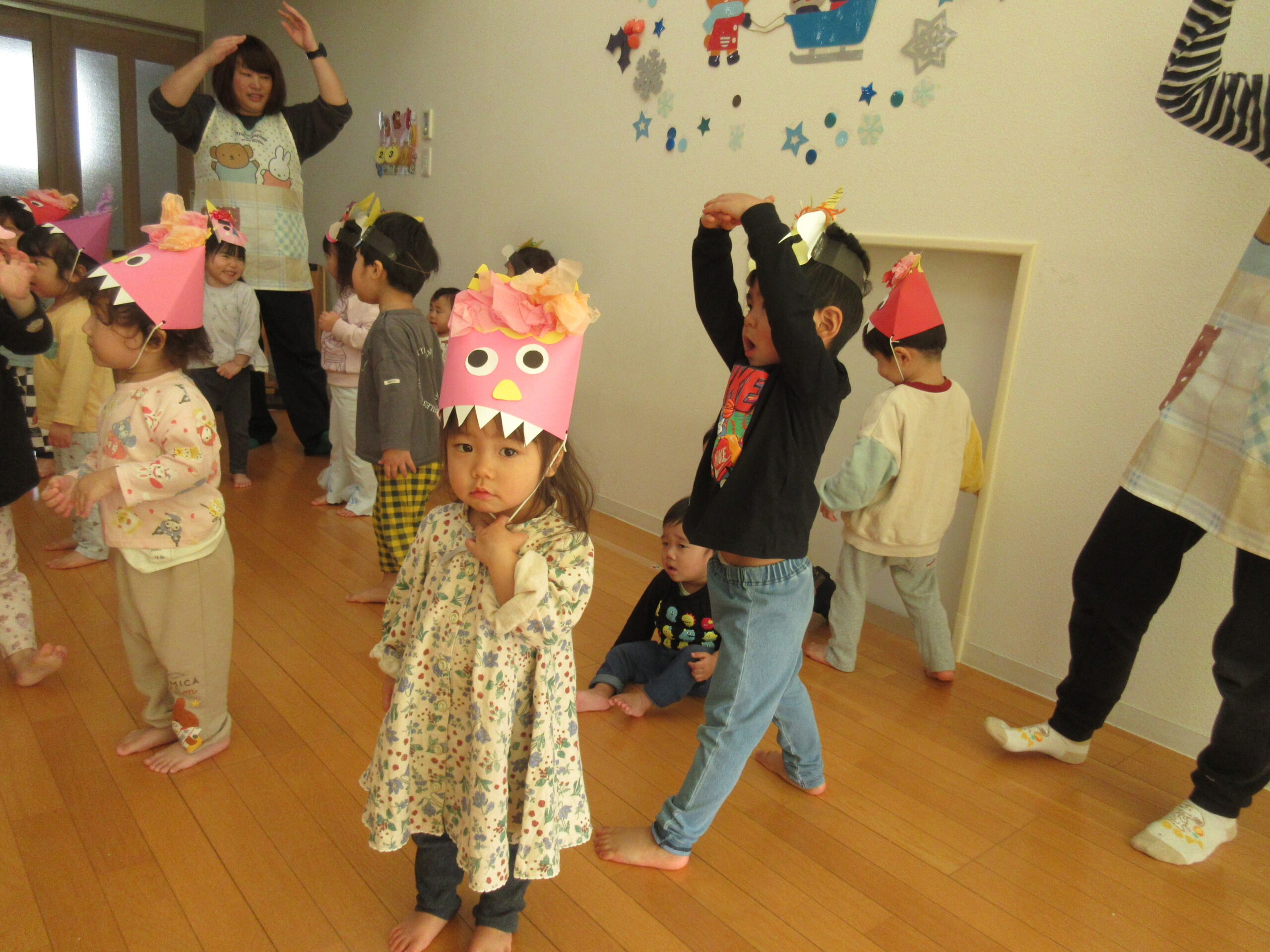 給食は節分にちなみ、”ちらし寿司”や3時のおやつに”鬼のパンツ柄のケーキ”を食べ、節分を存分に味わうことができましたね🌟