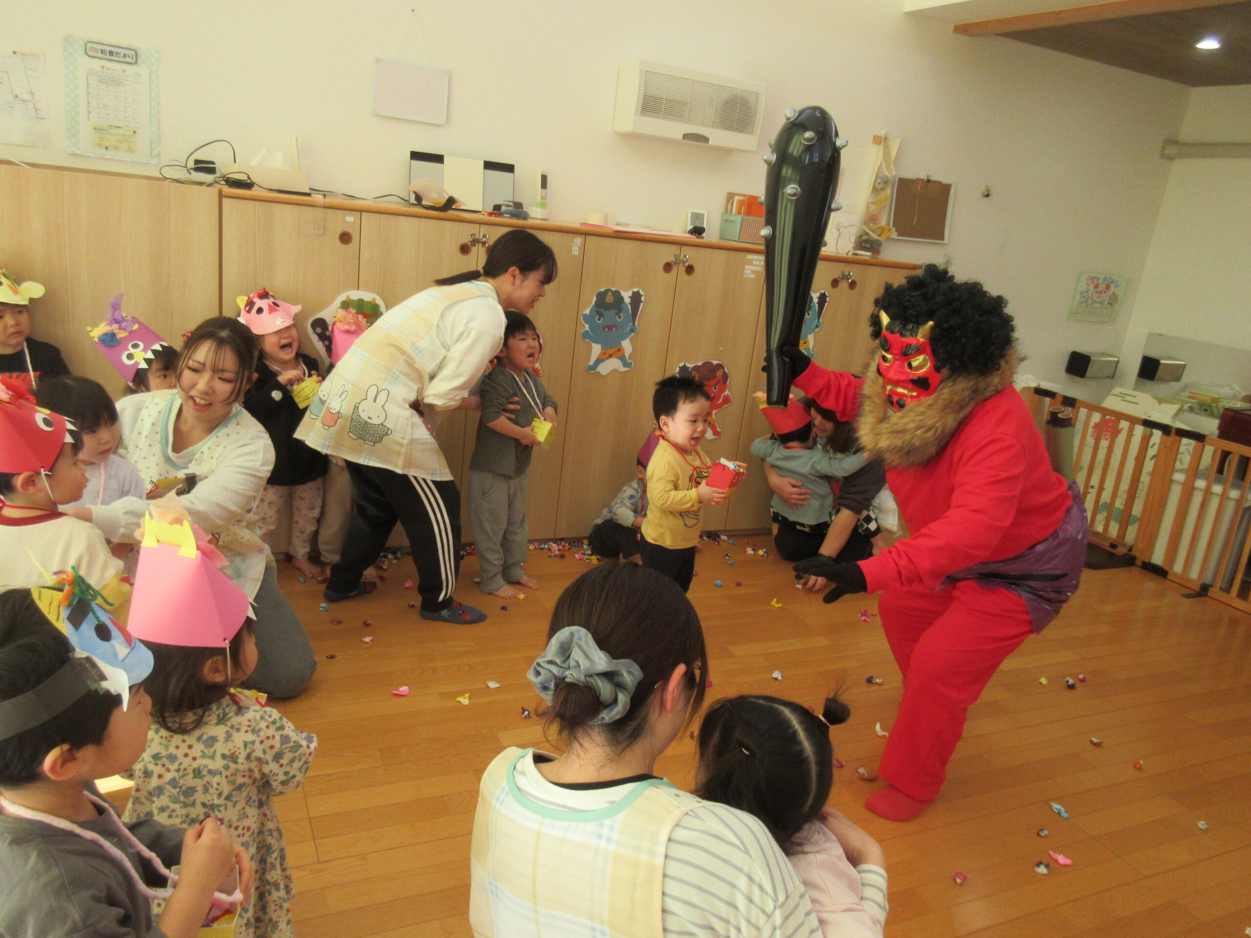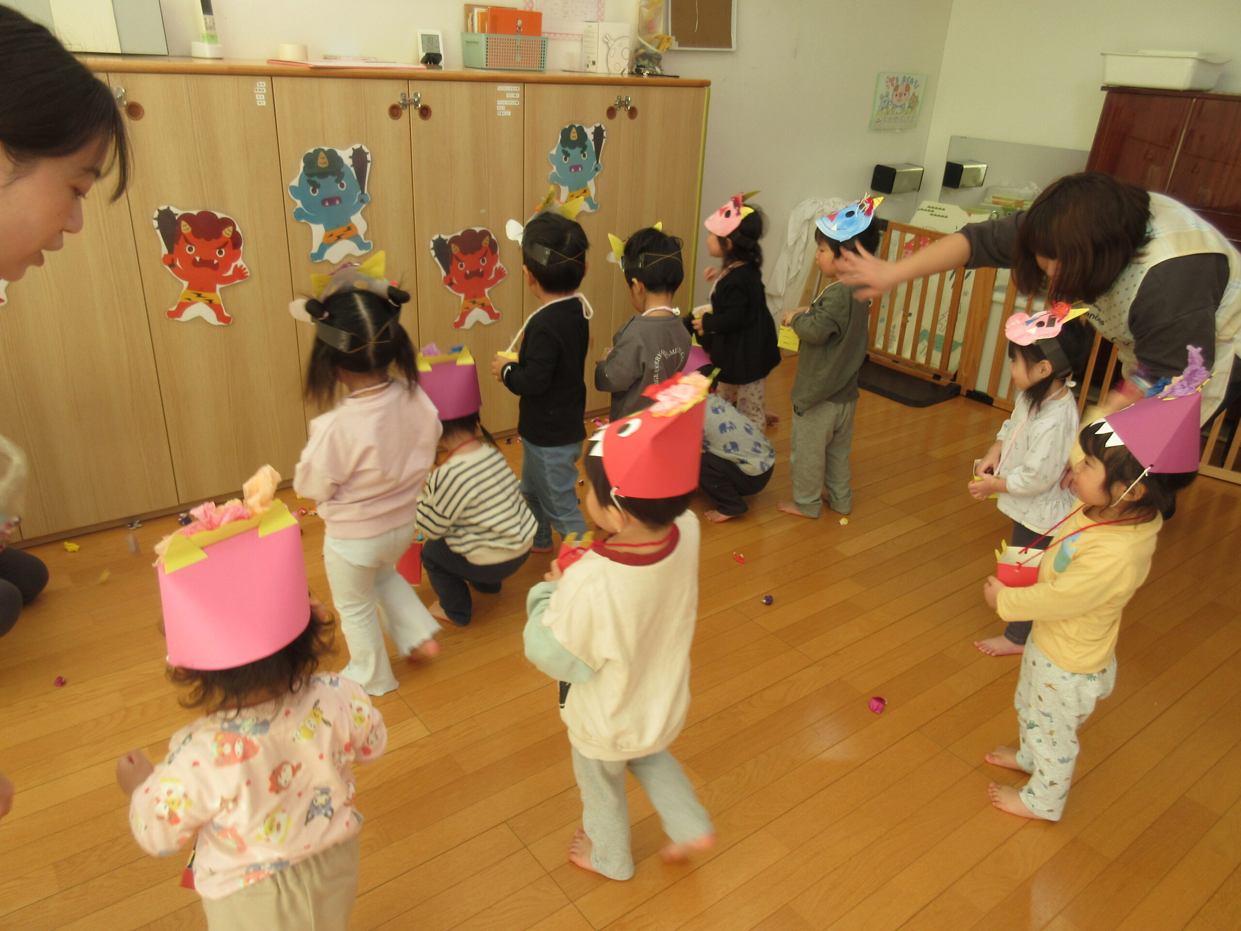 みんなで豆まきを楽しんでいると、