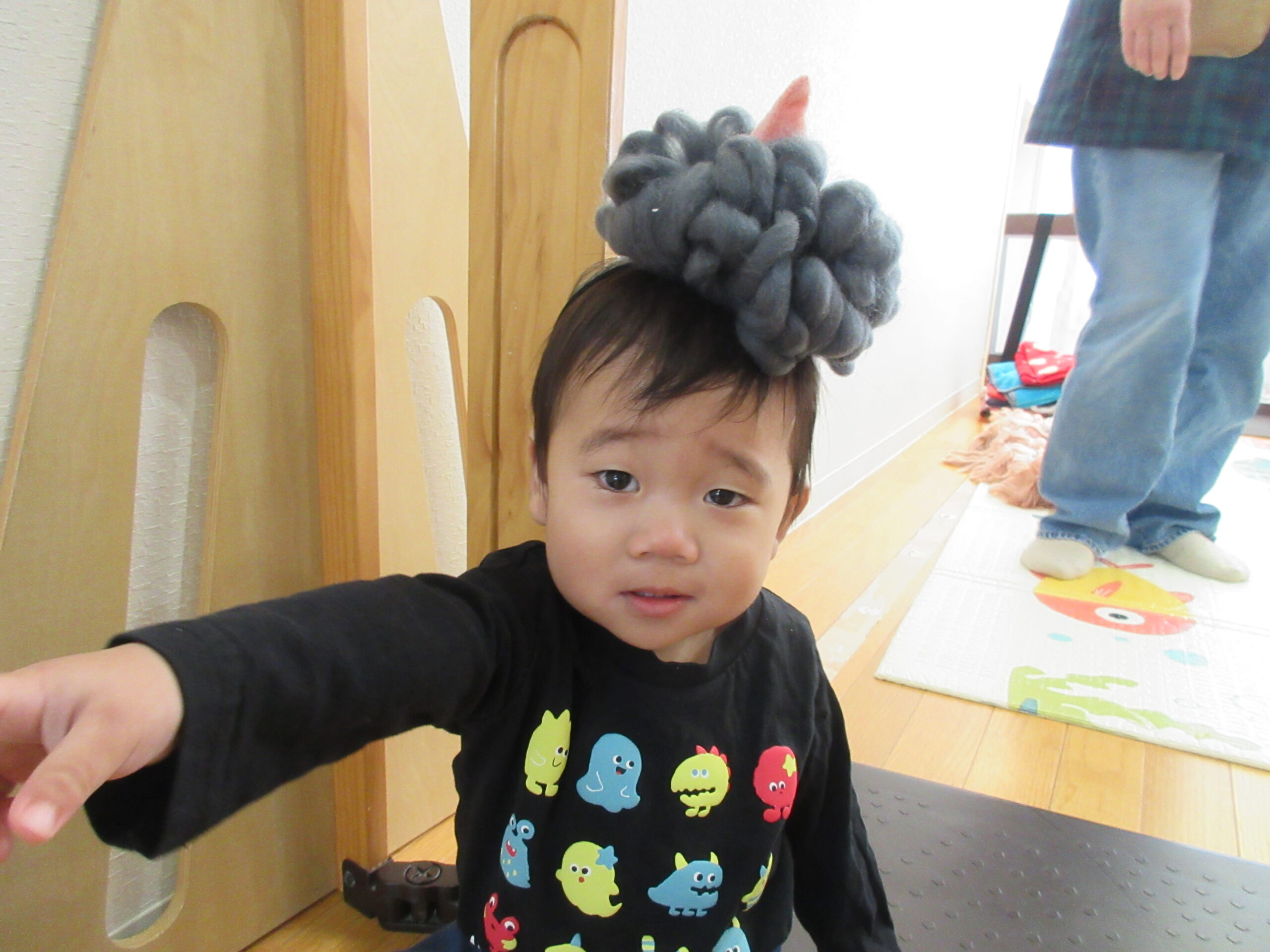 みかんぐみのお友達も、好きな色を選んで、紙をクシャクシャ丸めてたことや、目を付けたこと等、作った様子を教えてくれました😊