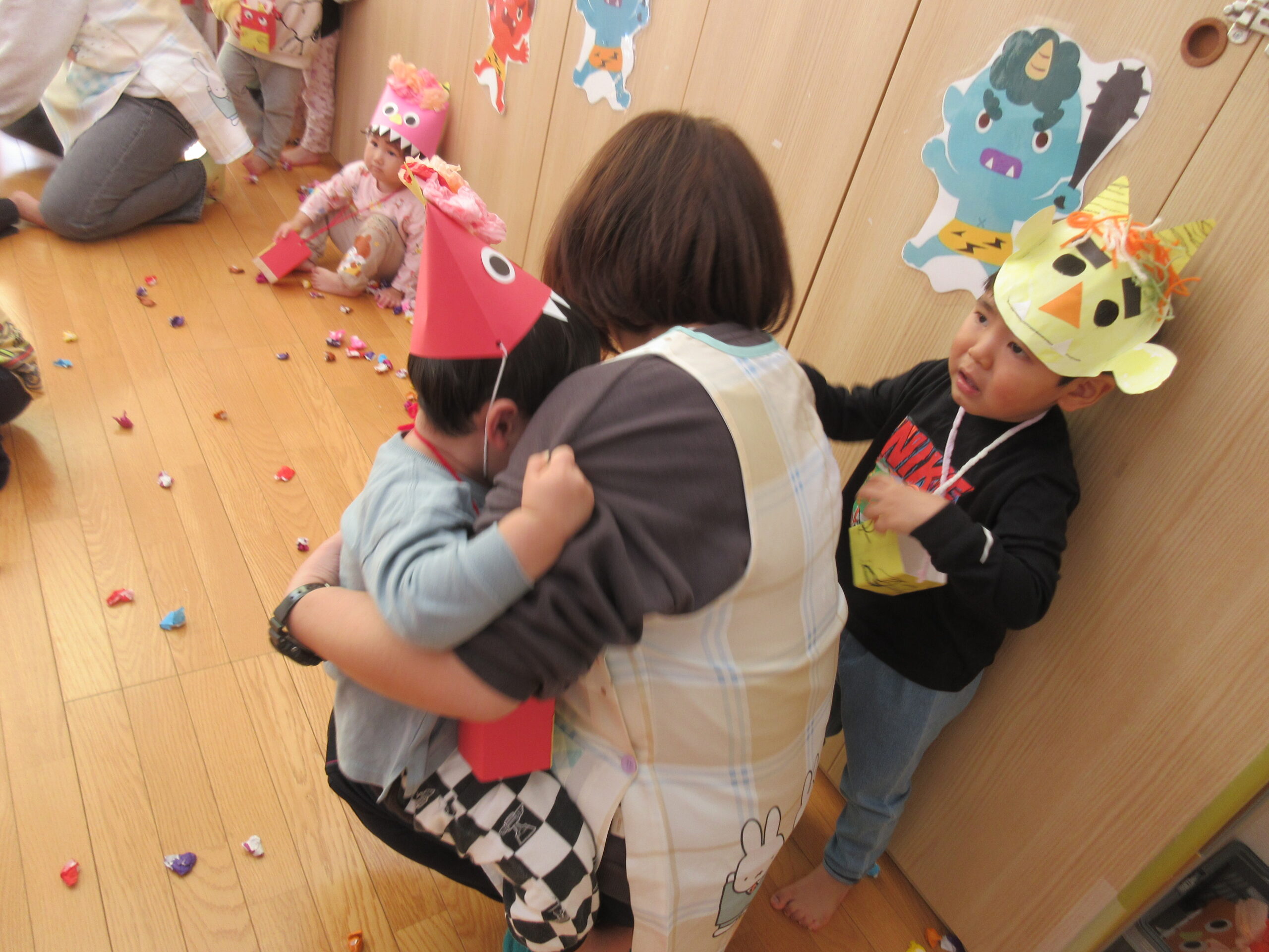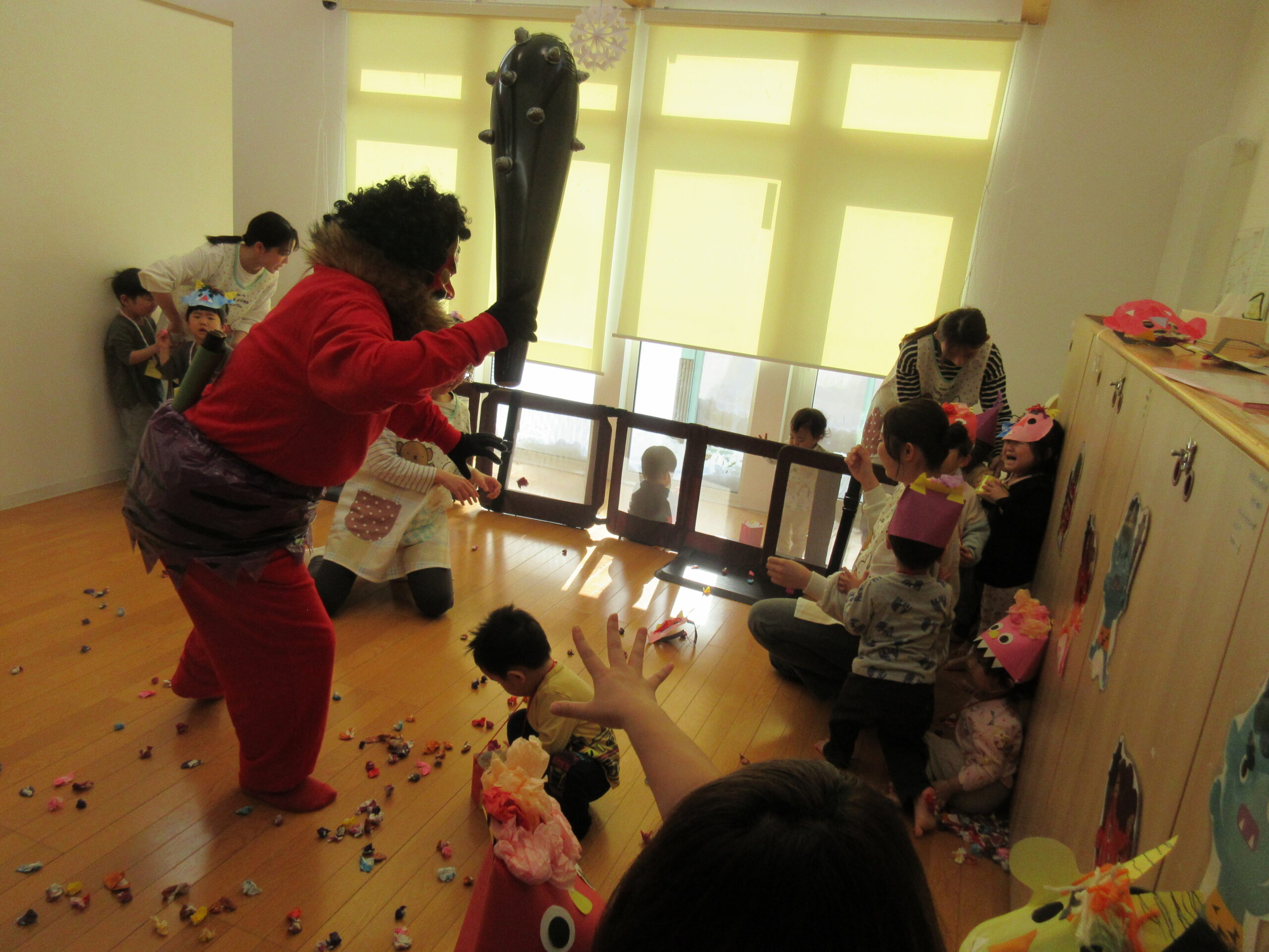 勇敢に立ち向かい、最後まで鬼に豆を投げている子もいました✊!!