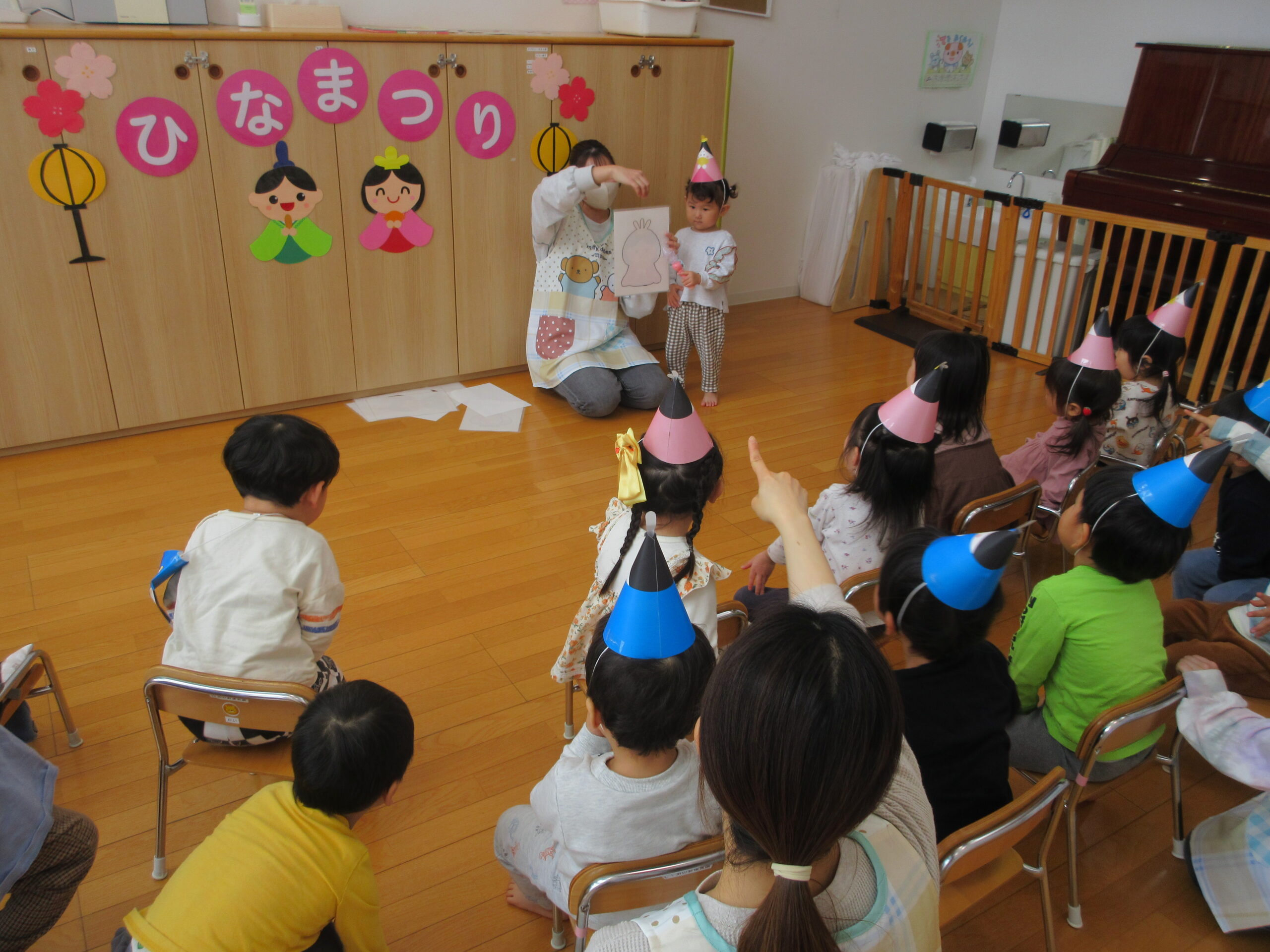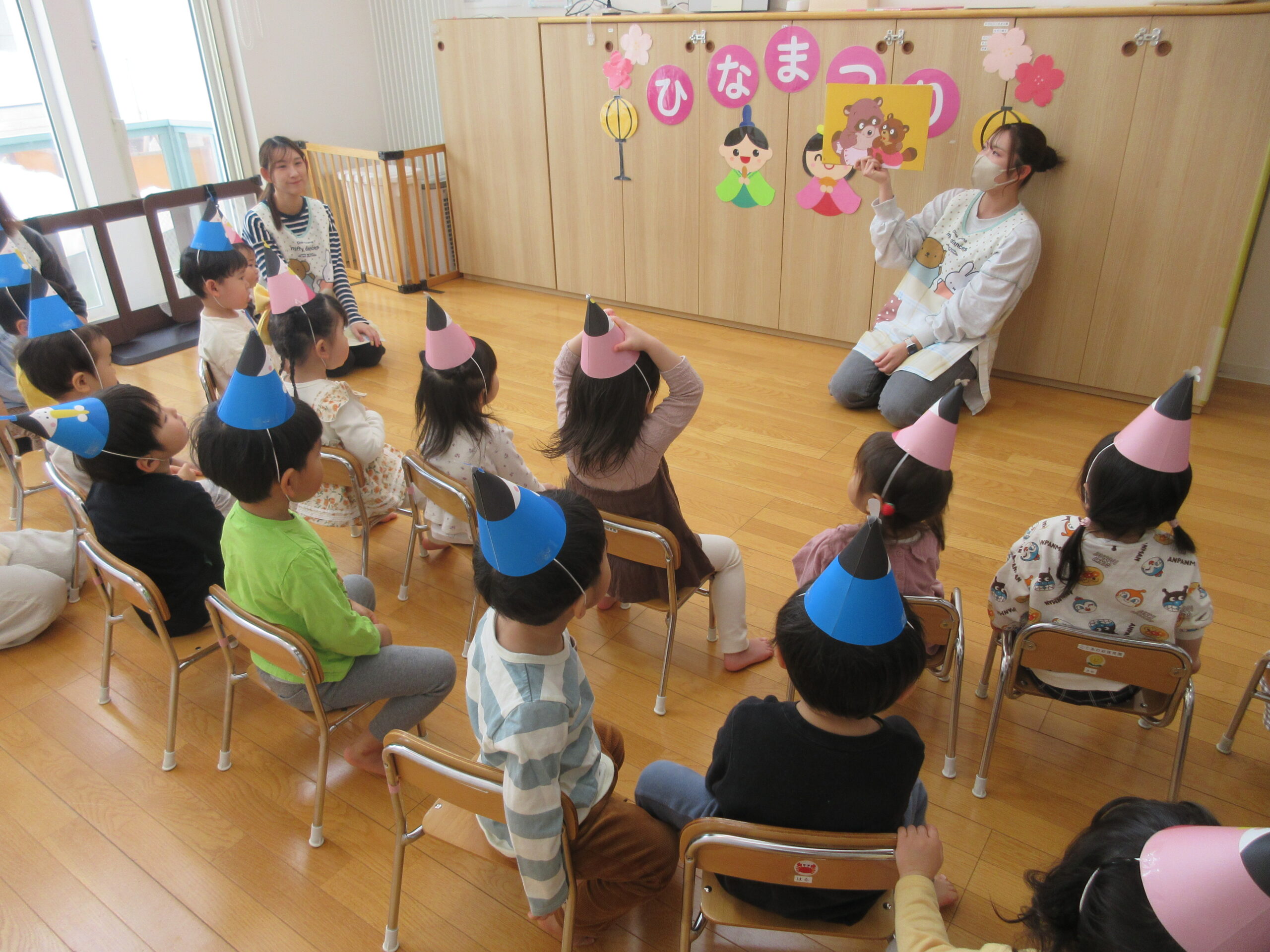 まずはみんなでひなまつりのお話の紙芝居を見ました🌟